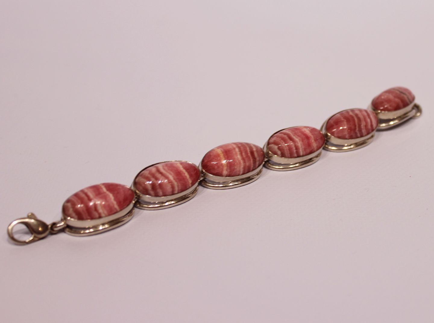 Armbånd med store lyserøde sten og af 925 sterling sølv.