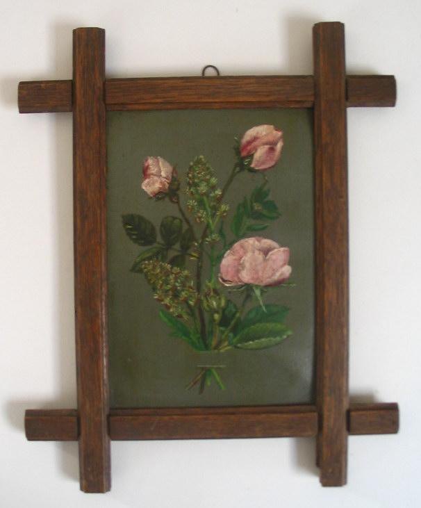 Dansk blomstermaler (19. årh.): en buket roser. Olie på pap. 15,5 x 11 cm. Sign.: Monogram WK 1890.