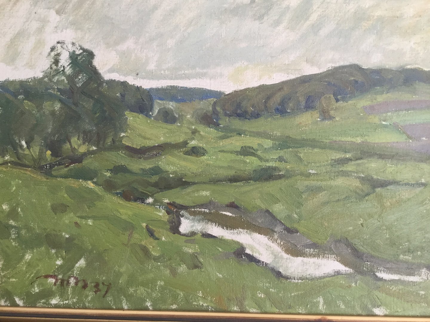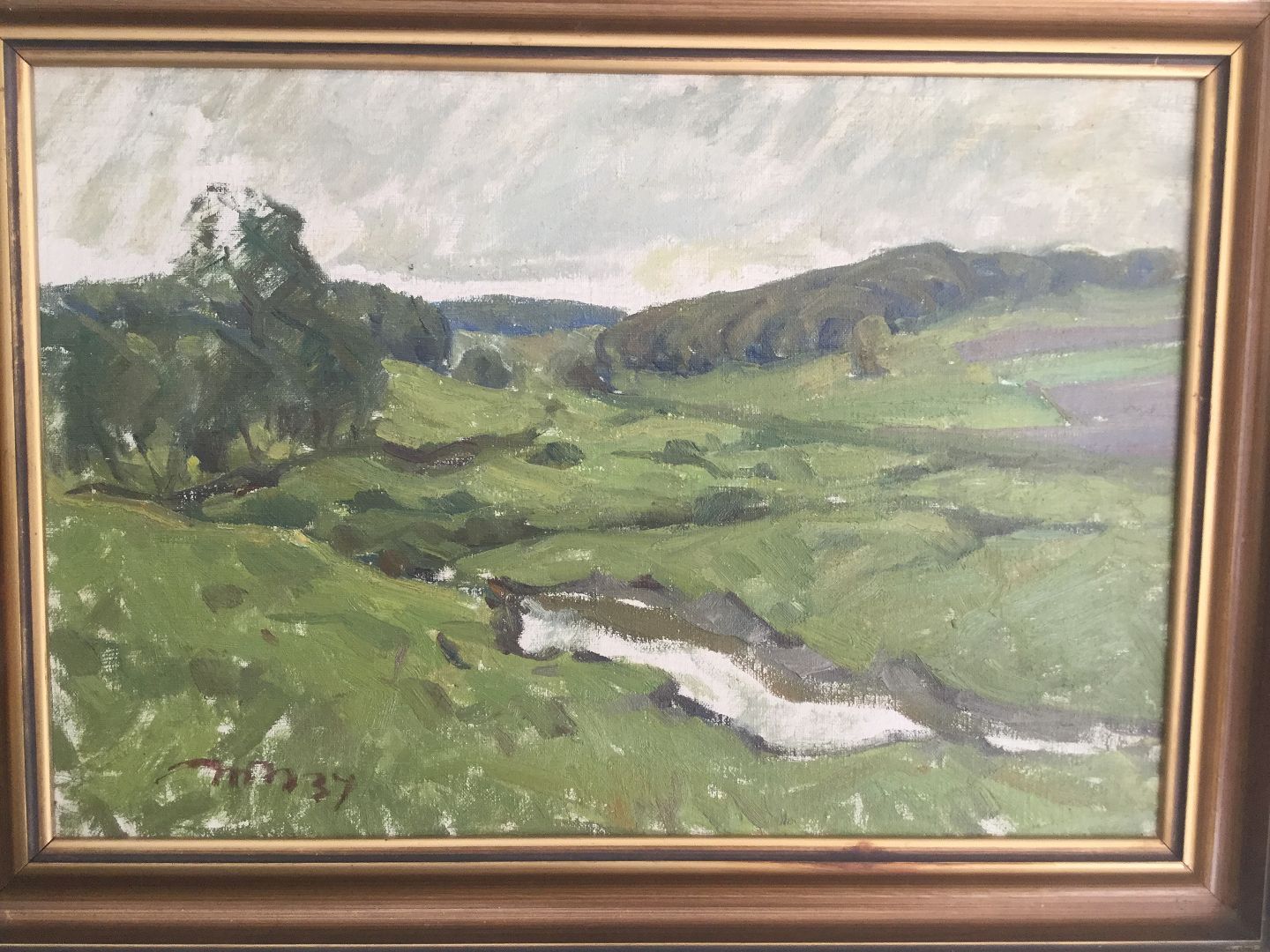Maleri af Mouritz Nørgaard - Landskab med å 1937.
