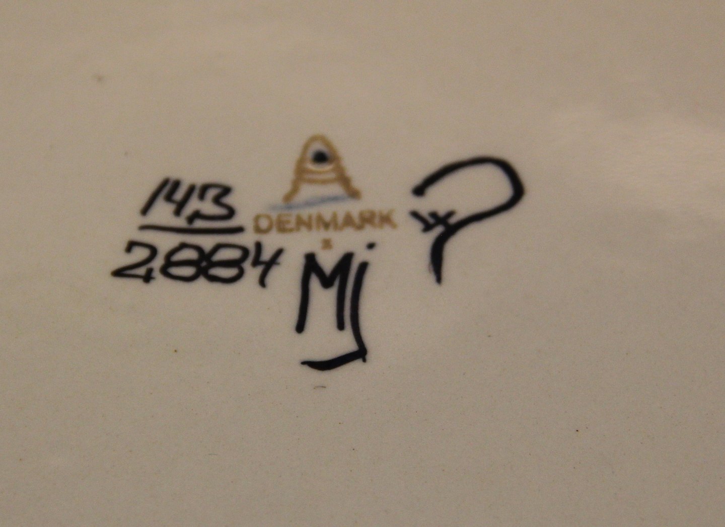 Aluminia RC Faience 143-2884 Blue fantasy bird 22.3 x 22.3 cm Marianne Johnson