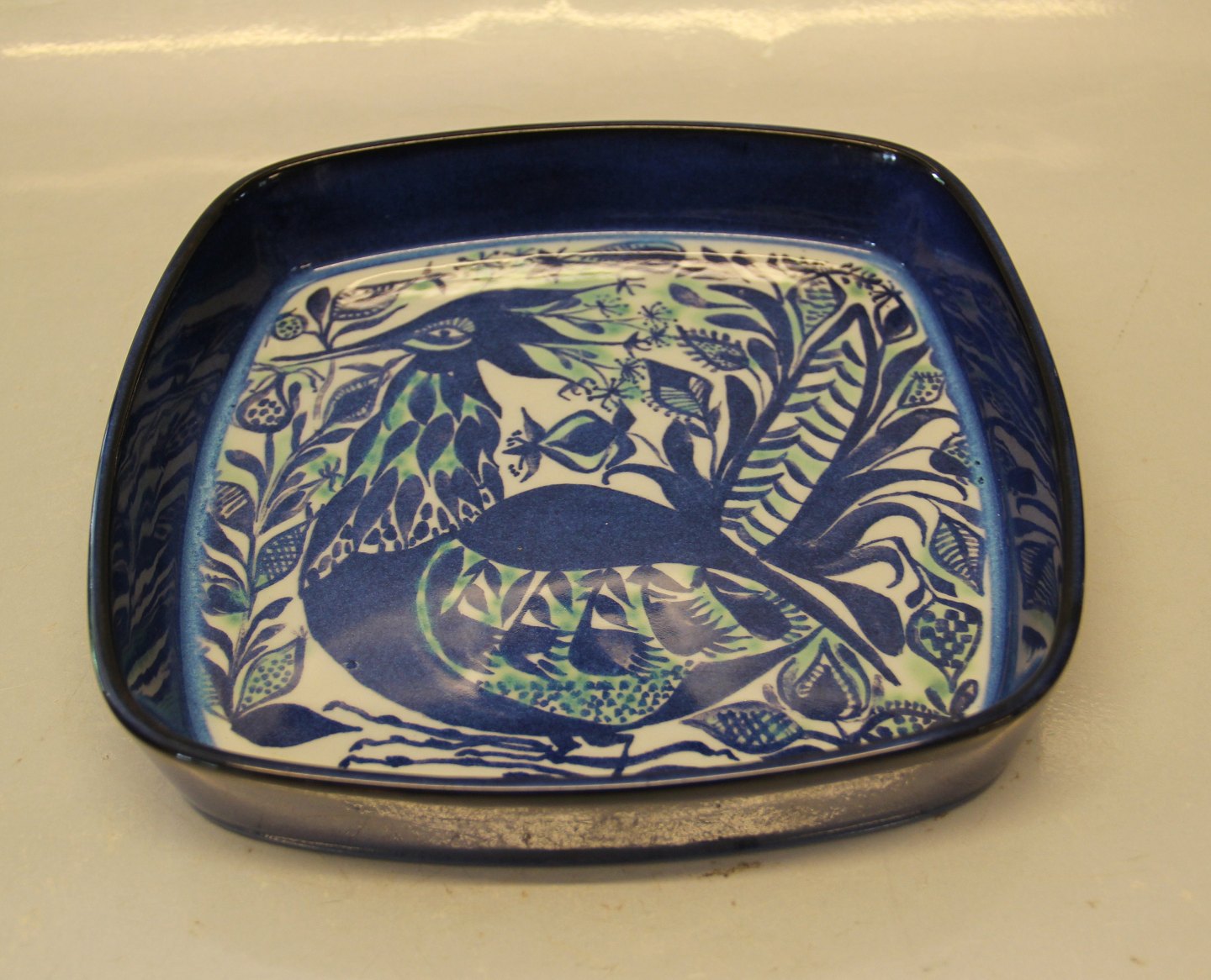 RC Faience 143-2884 Blue fantasy bird 22.3 x 22.3 cm Marianne Johnson Royal Copenhagen Aluminia Faience