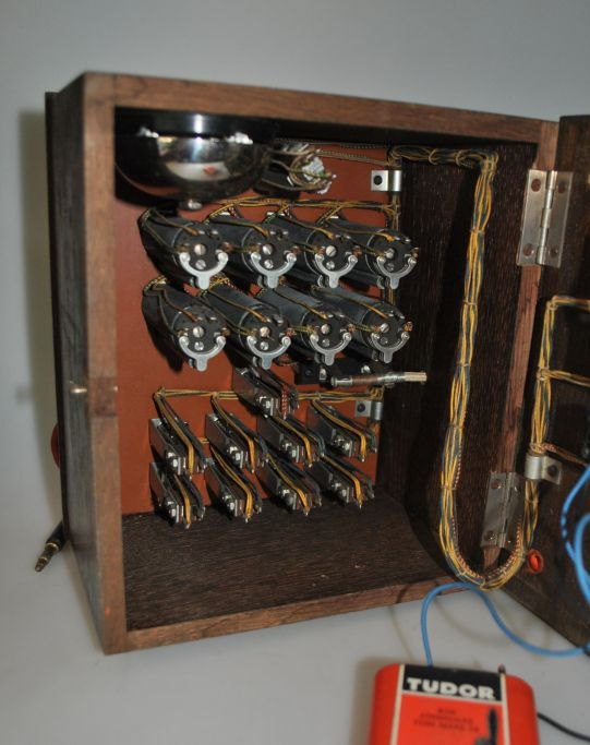 Svensk omstillings anlæg, 20. årh. Produceret af Ericsson. 23 x 20 x14,5 cm.