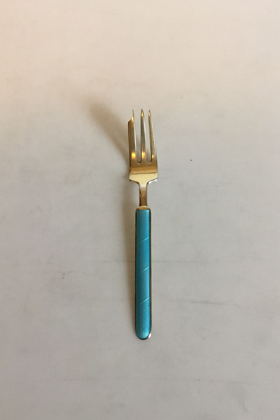 Forgyldt Sterling sølv med blå emalje Kagegaffel
