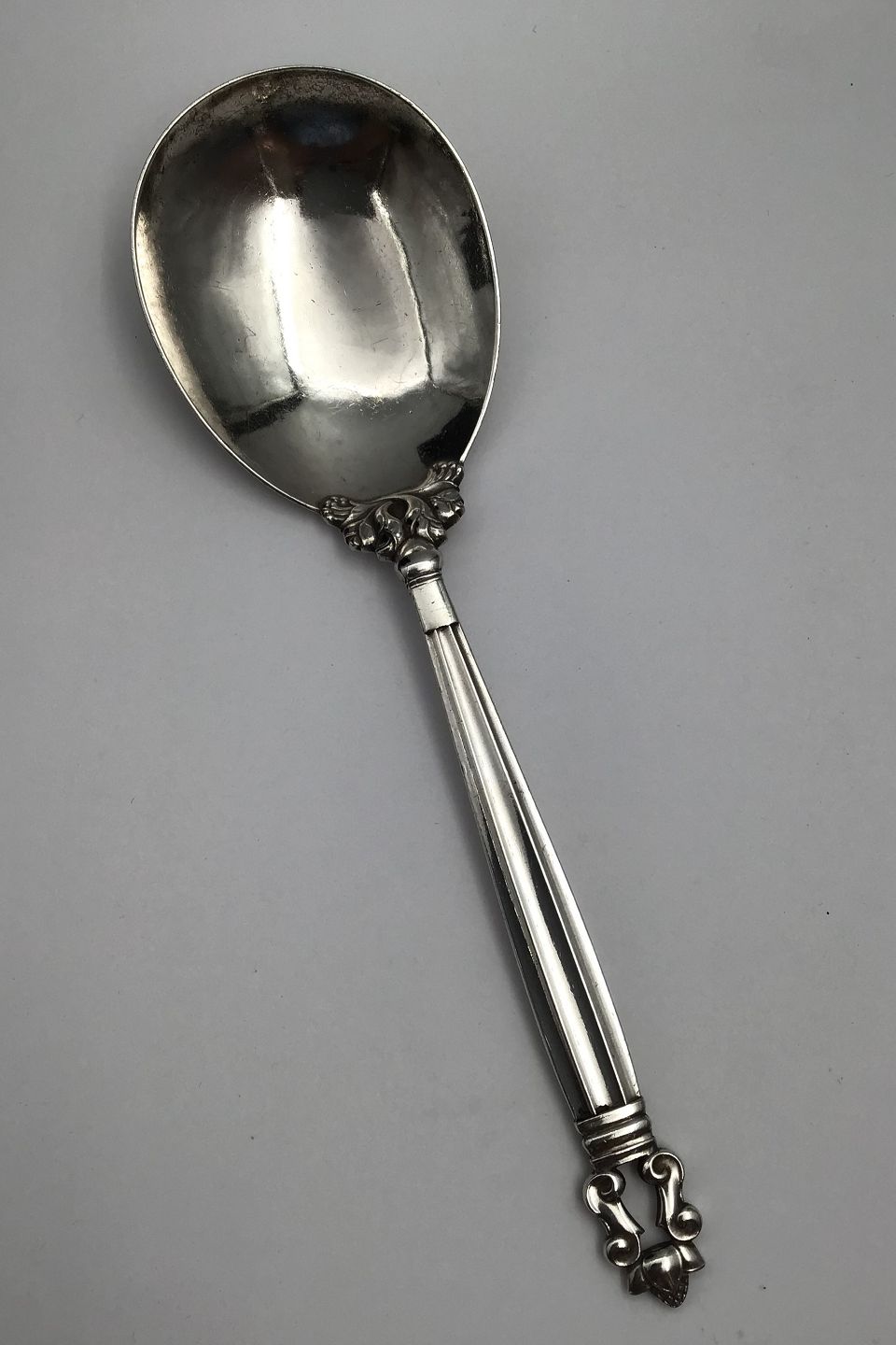 Georg Jensen Sterling Silver Medium Serving Spoon Acorn No 113. Measures 22.3 cm (8.77 inch)