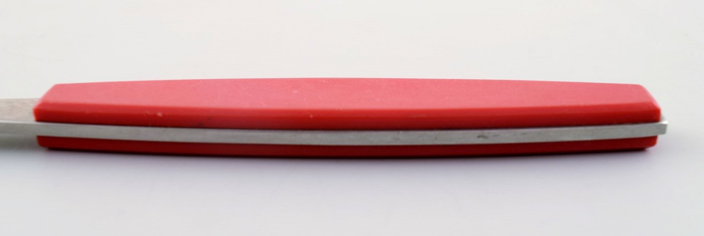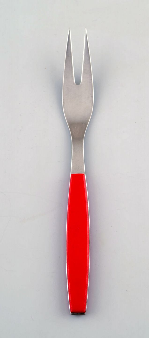 2 stk. Pålægsgaffel. Henning Koppel. Strata bestik af rustfrit stål og rød plast.
