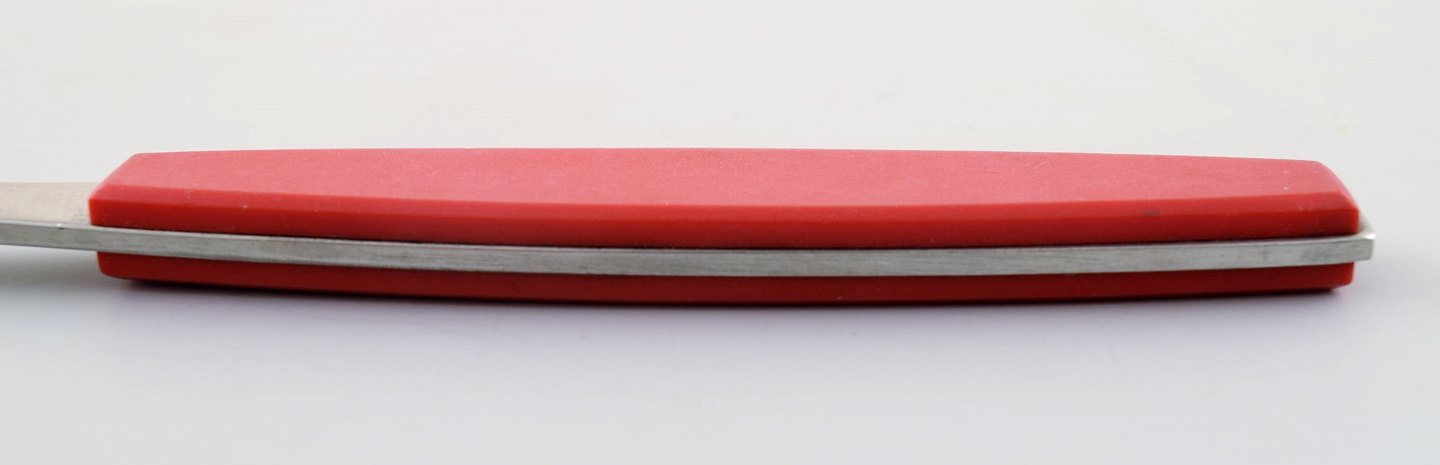 Bouillonske. Henning Koppel. Strata bestik af rustfrit stål og rød plast.