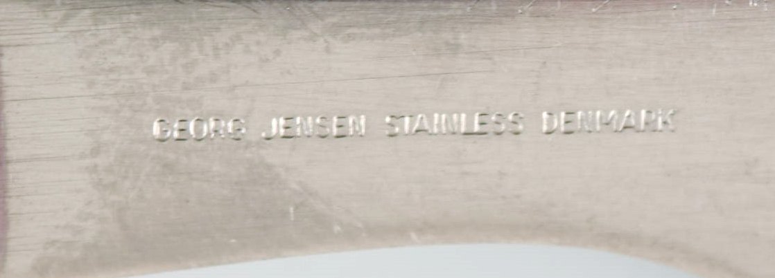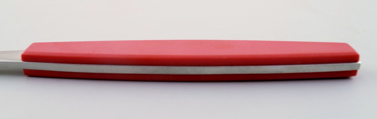 5 stk. middagskniv. Henning Koppel. Strata bestik af rustfrit stål og rød plast.