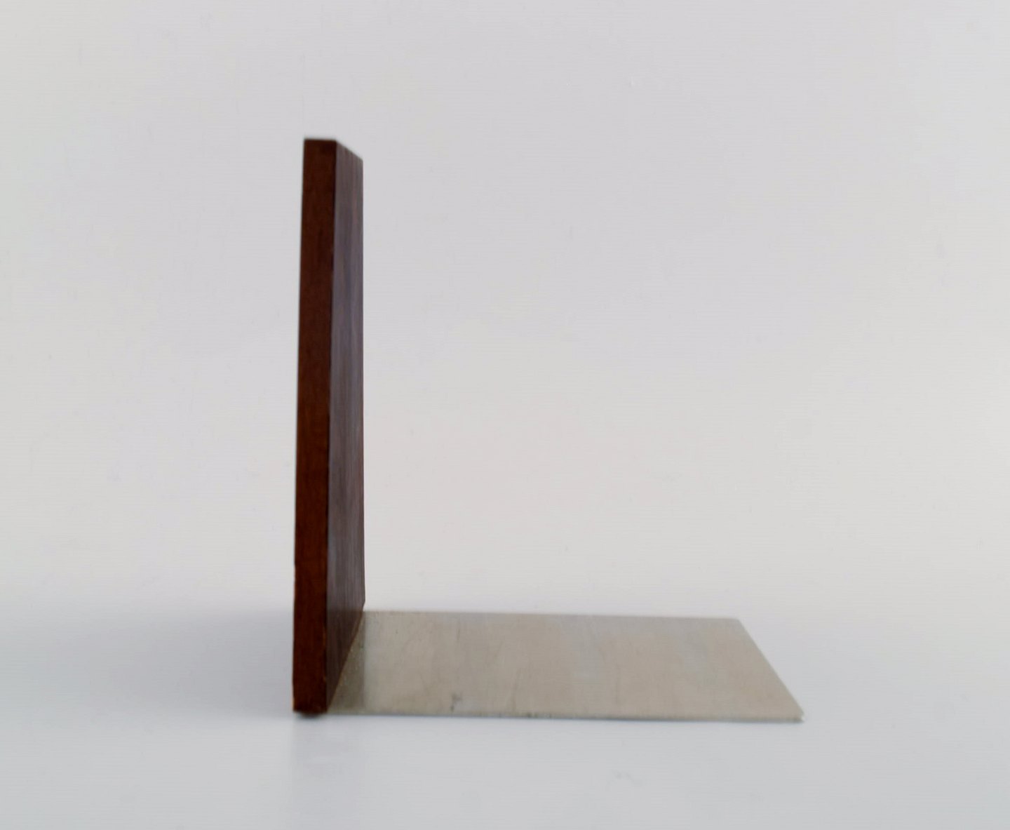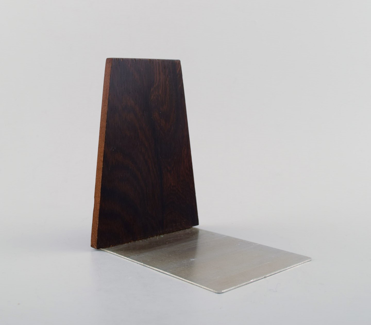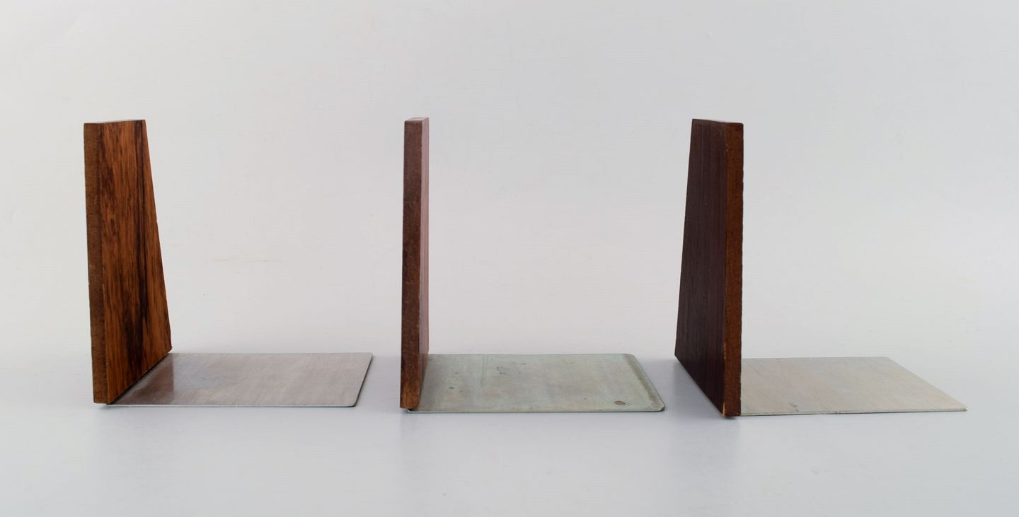 Dansk design : Tre stilrene bogstøtter i teak og rustfrit stål.