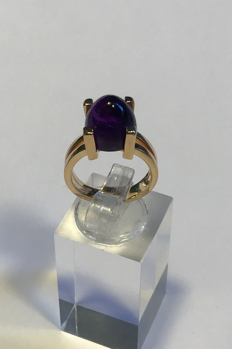 Georg Jensen 18 kt guld Ring med Ametyst Ringstr 49/US 5 Vægt 7.2 gr/0.25 oz. Stemplet GJ&W