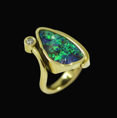 Henrik Skjønnemand Larsen. Ring i 18k guld med Opal og 0.15ct. diamant Top Wesselton (F-G)/VS.