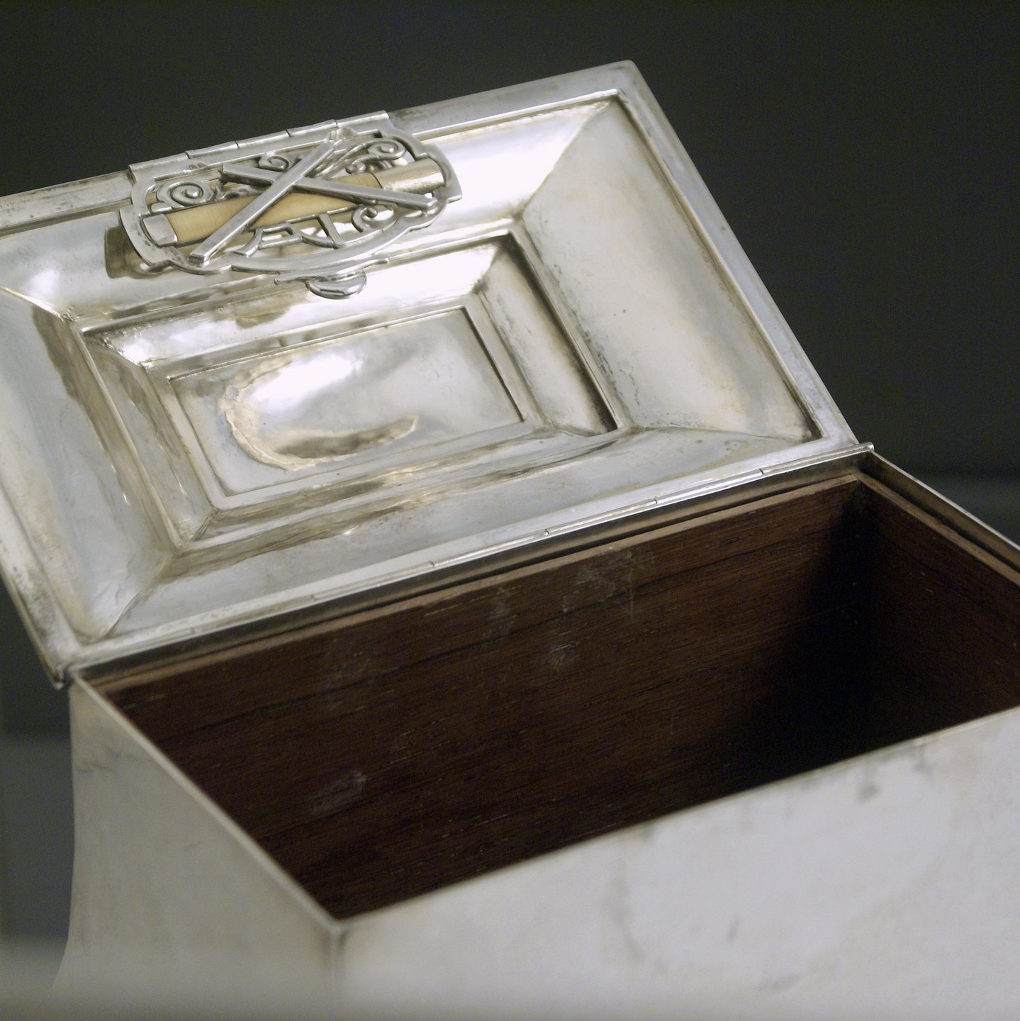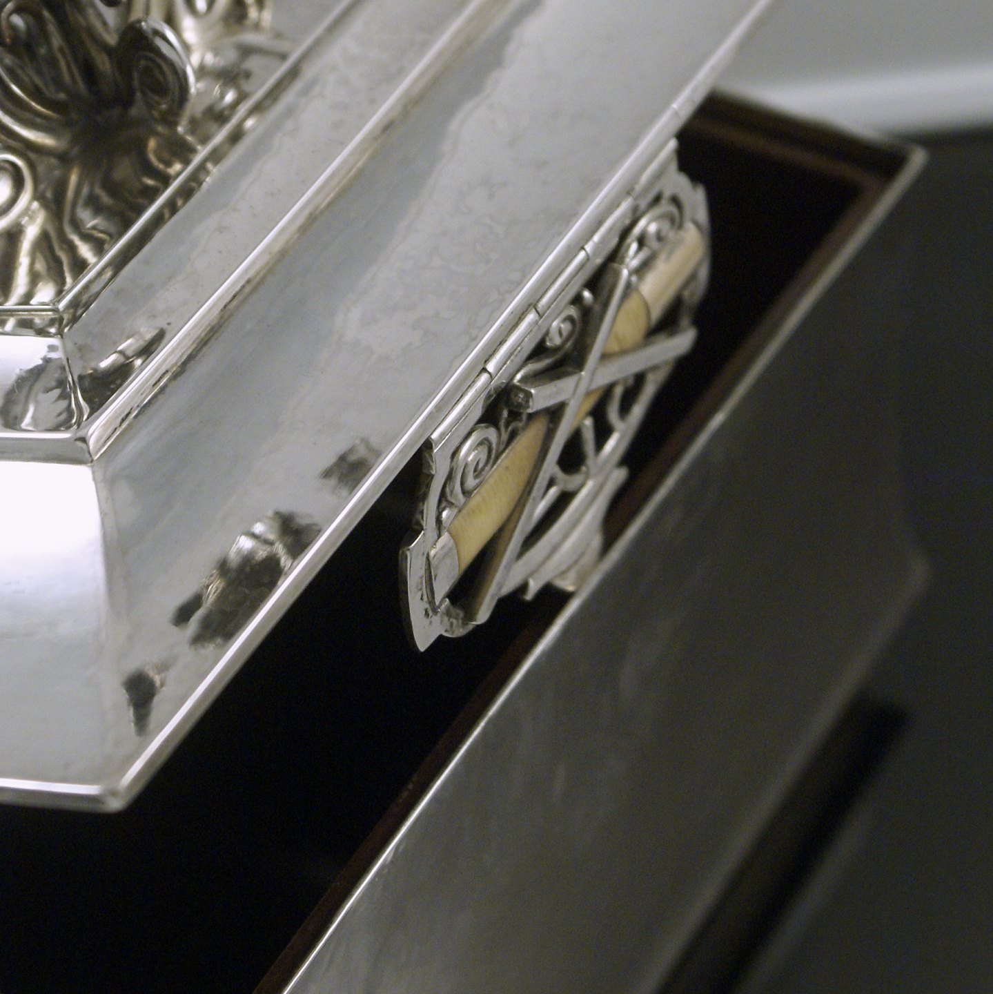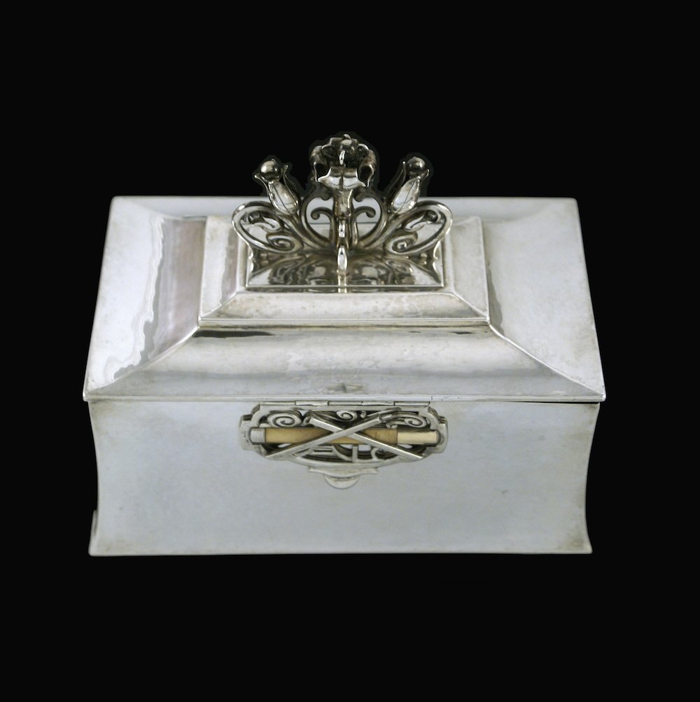 Kay Bojesen 1886-1958. Cigaretæske i sølv med elfenben og guld.