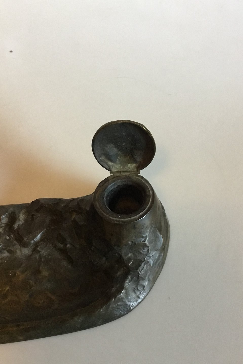 Bronze Penneholder med Blækhus. Dekoreret med ugle