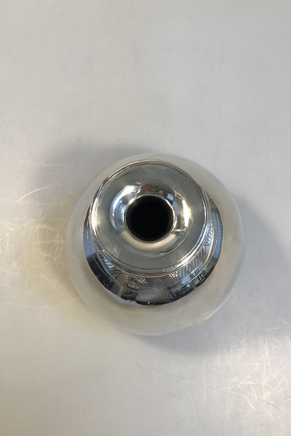 Hans Hansen Sterling Sølv Vase Pæreformet korpus, graveret geometrisk mønster Stemplet Anno 1938 H 13.5 cm Vægt 495 gr/17.4 oz