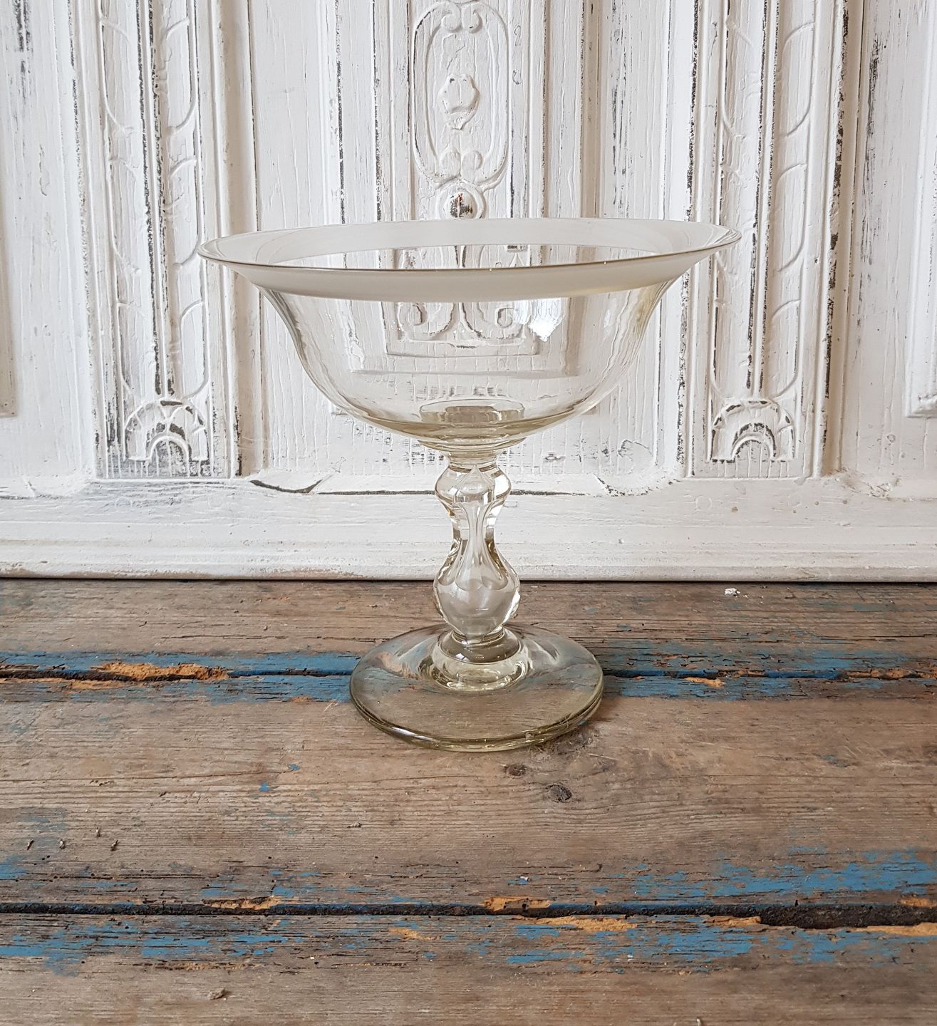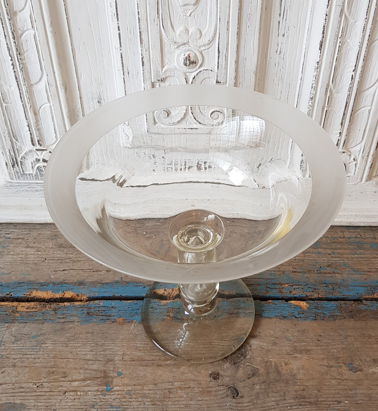 Stor mundblæst glas opsats med båndslebet kant