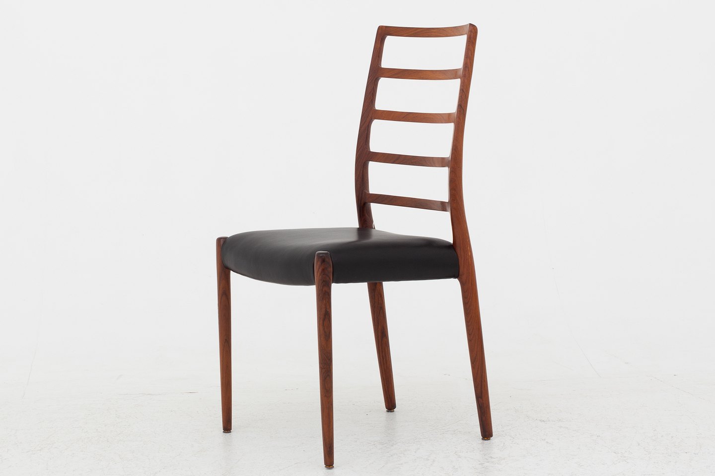 NO 82 - Højrygget spisestuestol i palisander med nyt, sort Palace-læder.