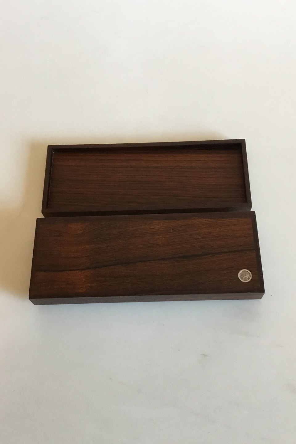 Hans Hansen Palisanderæske med to rum og løst låg med Sterlingsølv indlæg. Måler 20,9 cm x 8 cm x 3,2 cm