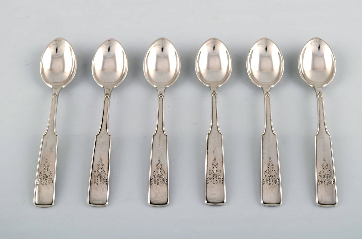 Hans Hansen sølvtøj Arvesølv nr. 2. Sæt på 6 stk kaffeskeer i 3-tårnet helsølv. 1937