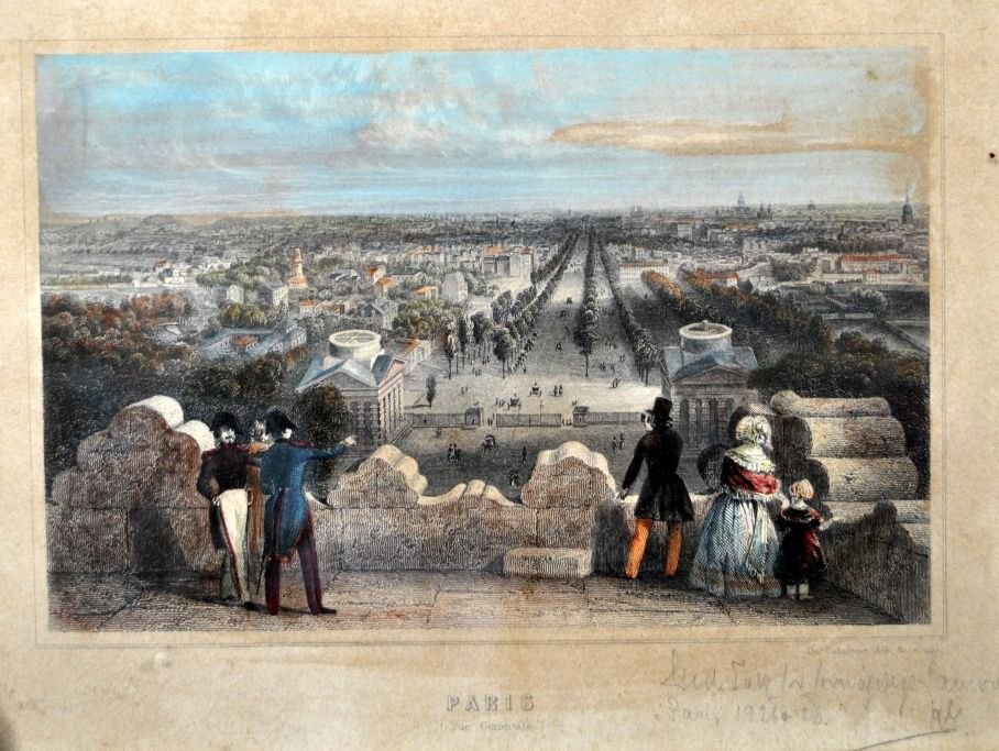 Håndkoloreret litografi, Paris, 19. årh.