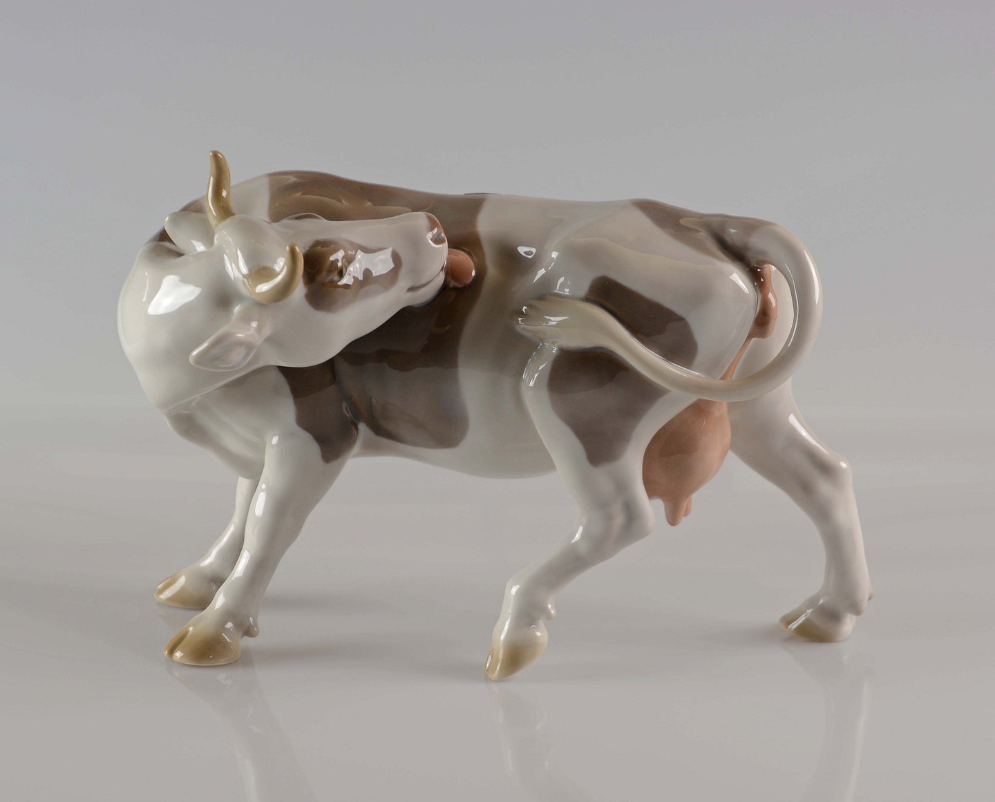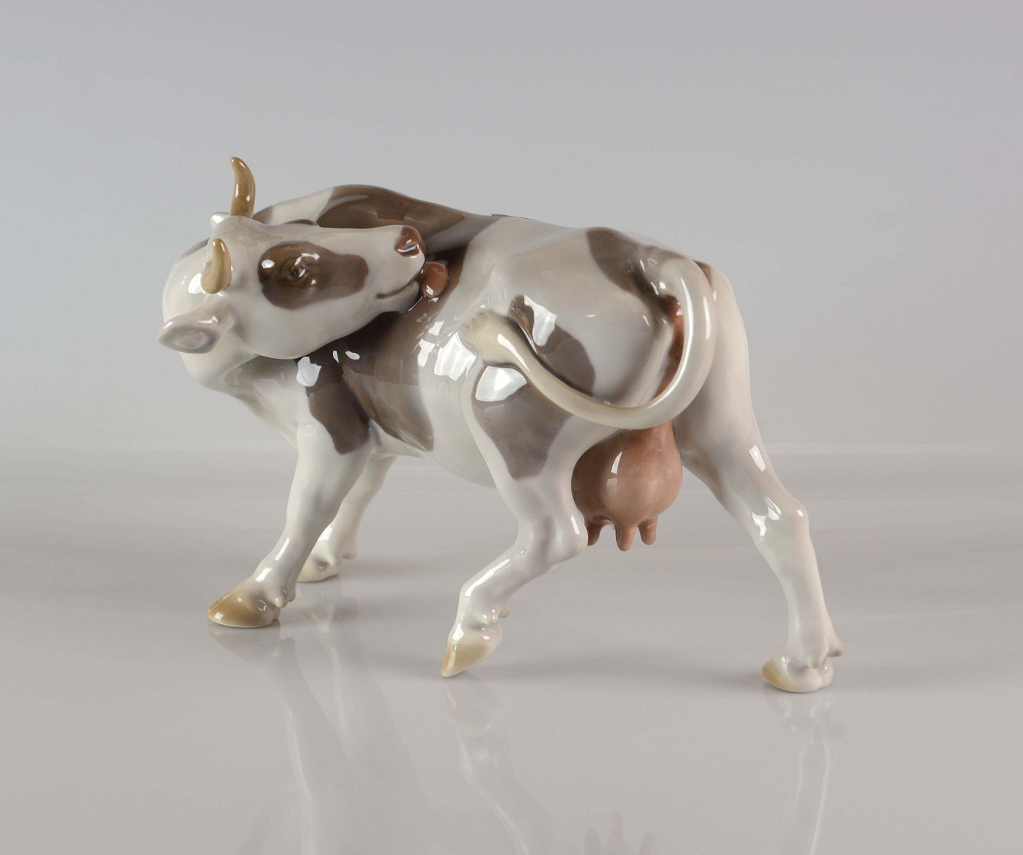 Figur i porcelæn - ko der slikker sig på siden nr. 2161