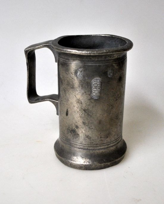 Buntzen målebæger i tin, 1888, København, Danmark. 1/2 Pot. Med håndtag. Stemplet. Højde.: 8,5 cm.