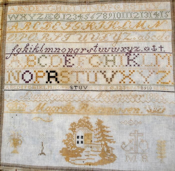 Navneklud, 1885, Danmark. Lundgaard, Magrete Rasmussen. 38 x 40 cm. Uindrammet.
