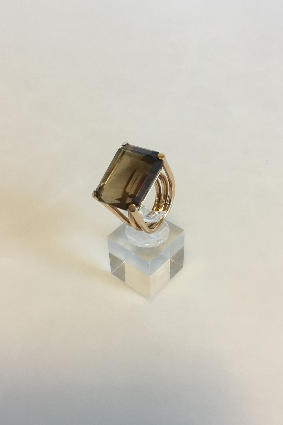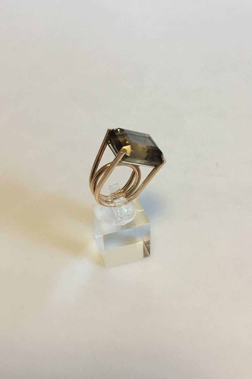Bent Knudsen 14 K Guldring med røgfarvet Quartz