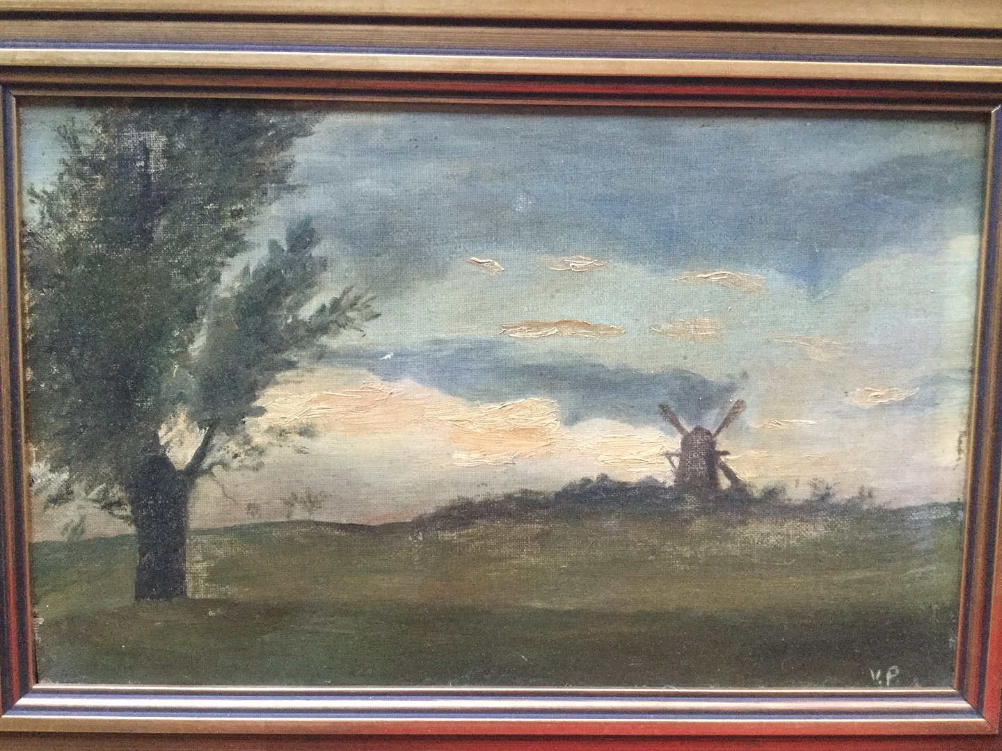 Maleri af Vilhelm Pacht - Landskab med mølle.