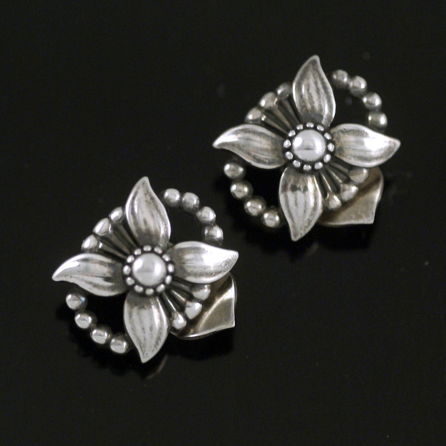 Georg Jensen. Øreclips i sterling sølv med sølvsten - Heritage 1998