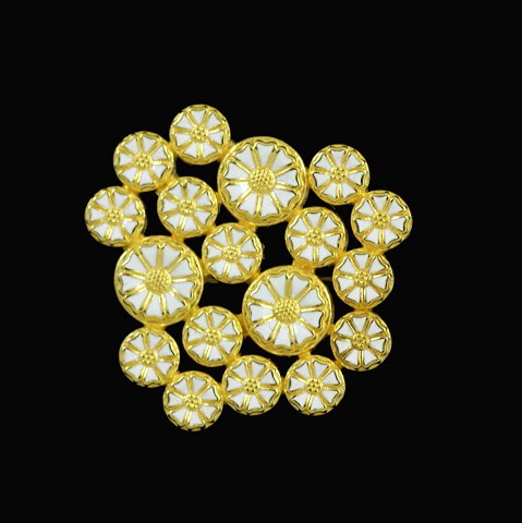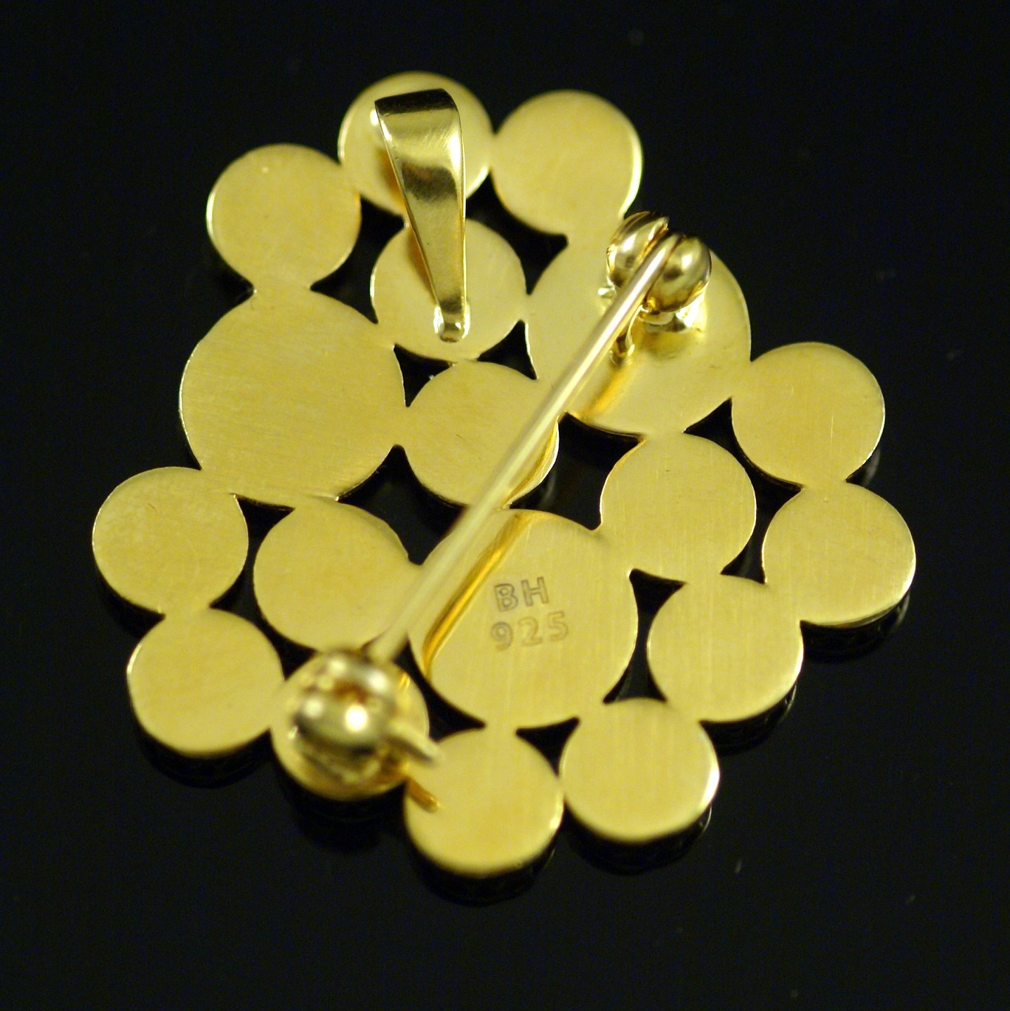 Text zugänglich auf Dänische: Bernhard Hertz / Lund CPH. Marguerit / Daisy Broche/vedhæng i forgyldt sterling sølv med emalje.