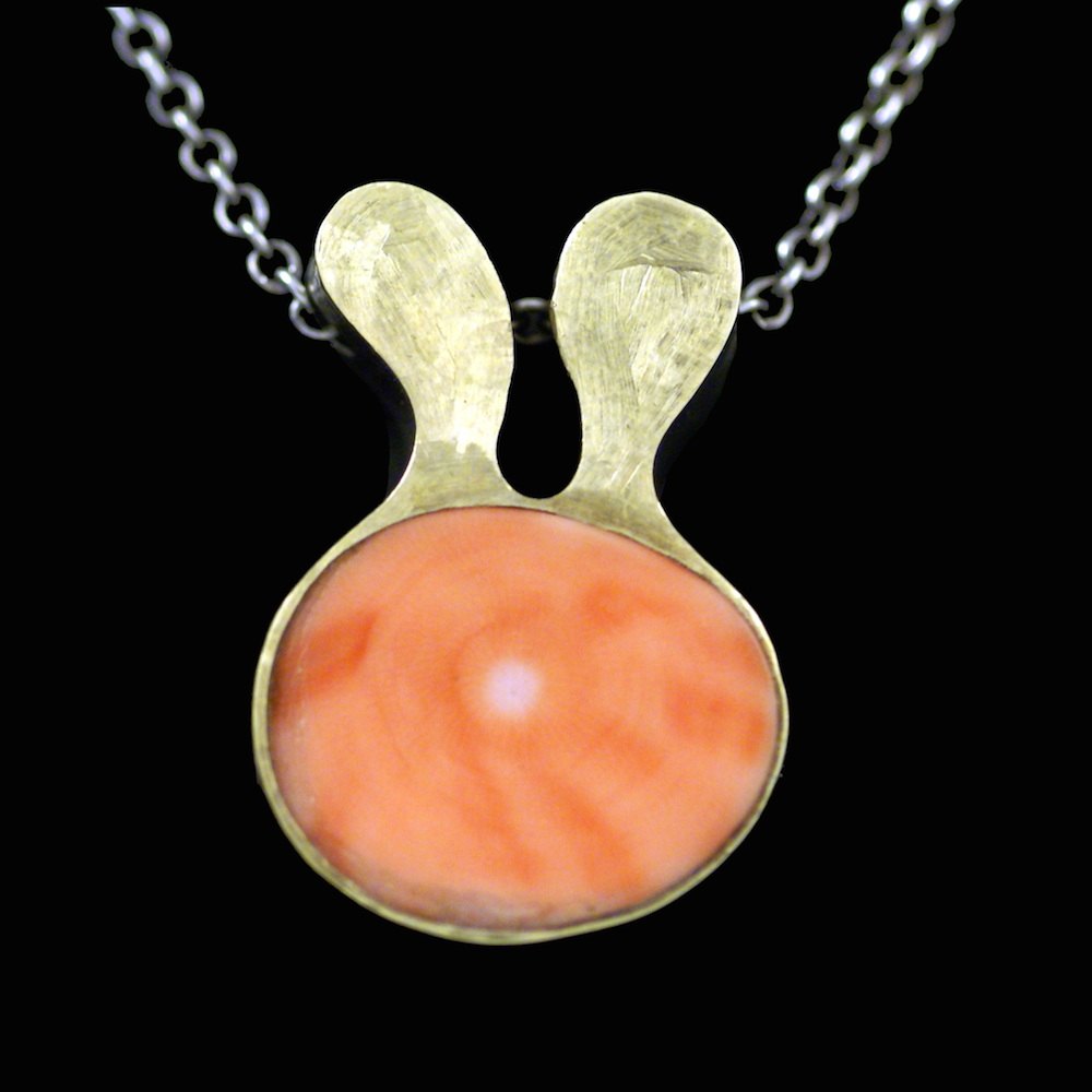 Ole Waldemar Jacobsen. Vedhæng i sterling sølv med 18k guld koral.