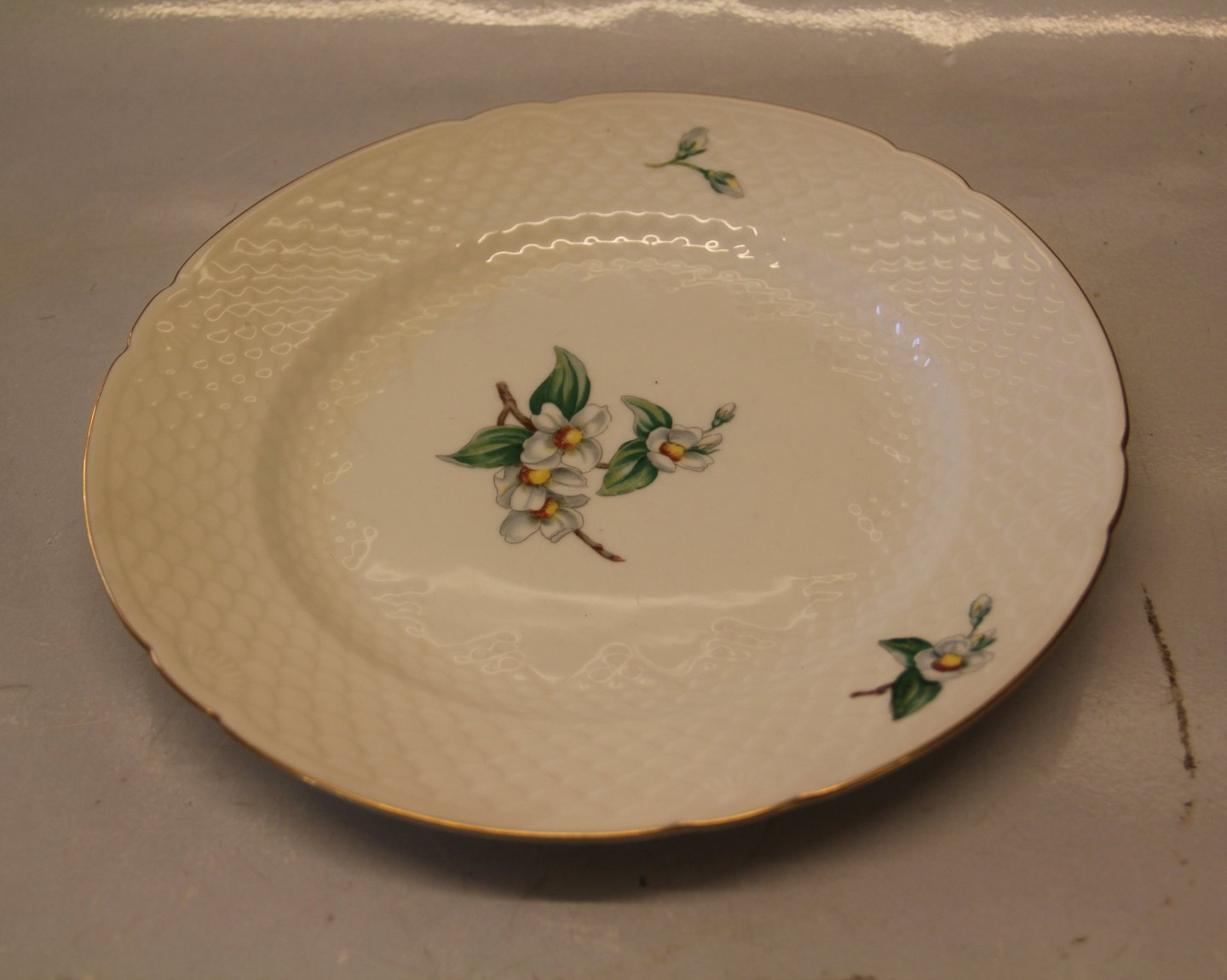 B&G Heimdal Yasmin 025 Middagstallerken 24 cm (325) Bing & Grøndahl Heimdahl - Jasmin kremefarvet porcelæn med guldkant dekoreret med Jasmin - ikke at forveksle med Æbleblomst I fin og hel stand