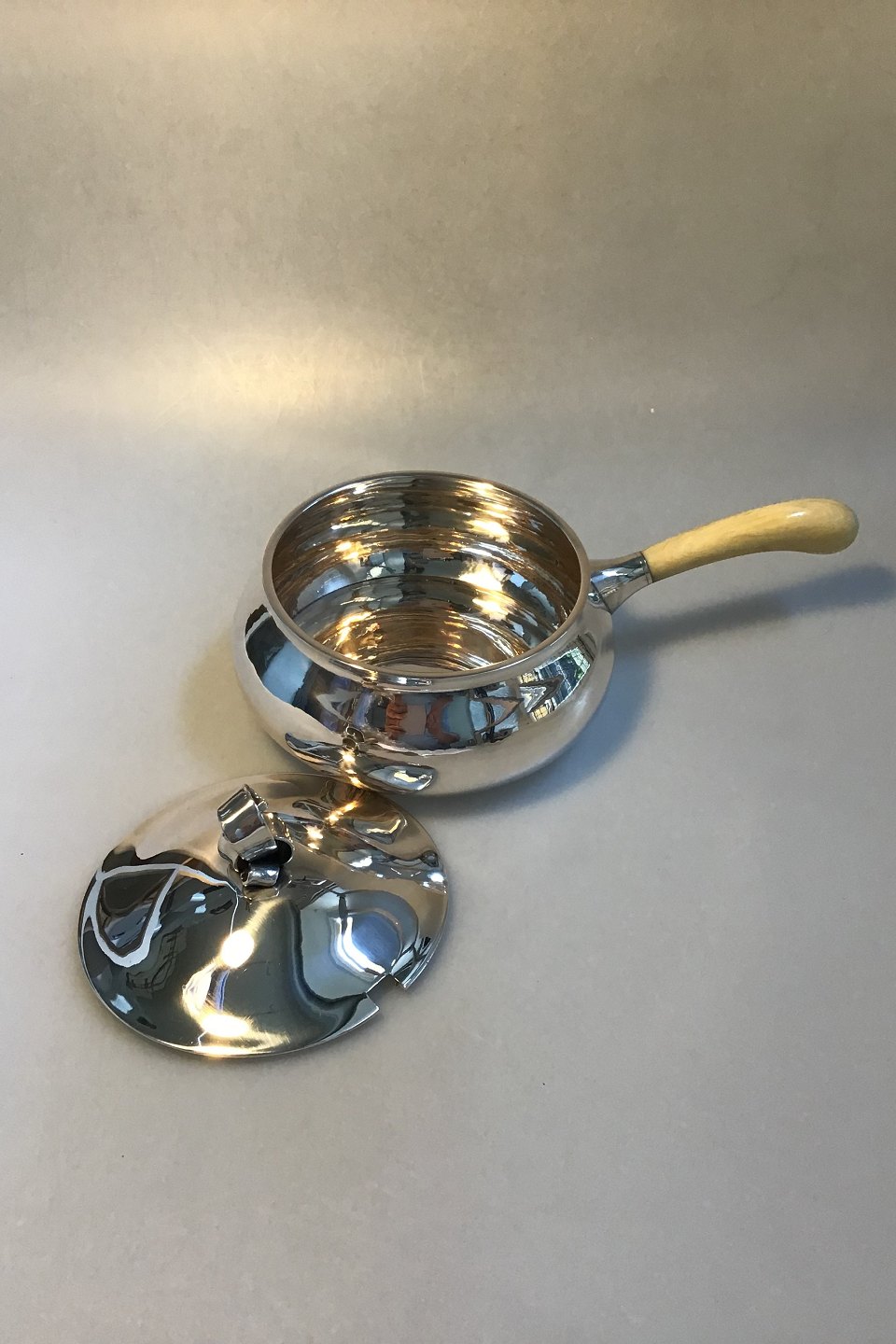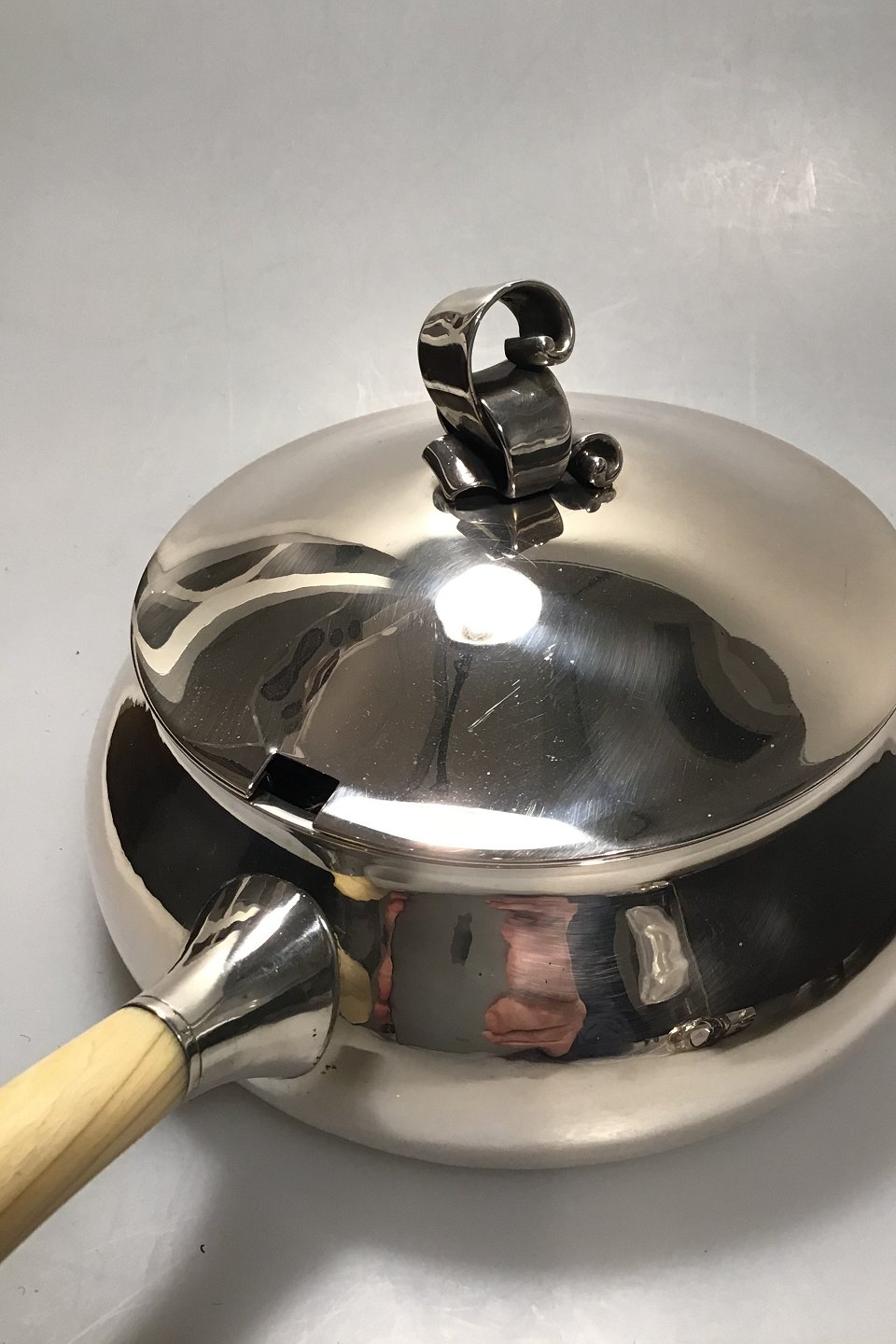 Evald NielsenLidded Casserole of Silver with handle of Ivory. Measures 29 cm / 11 27/64 in. Weighs 579 g / 20.44 oz.