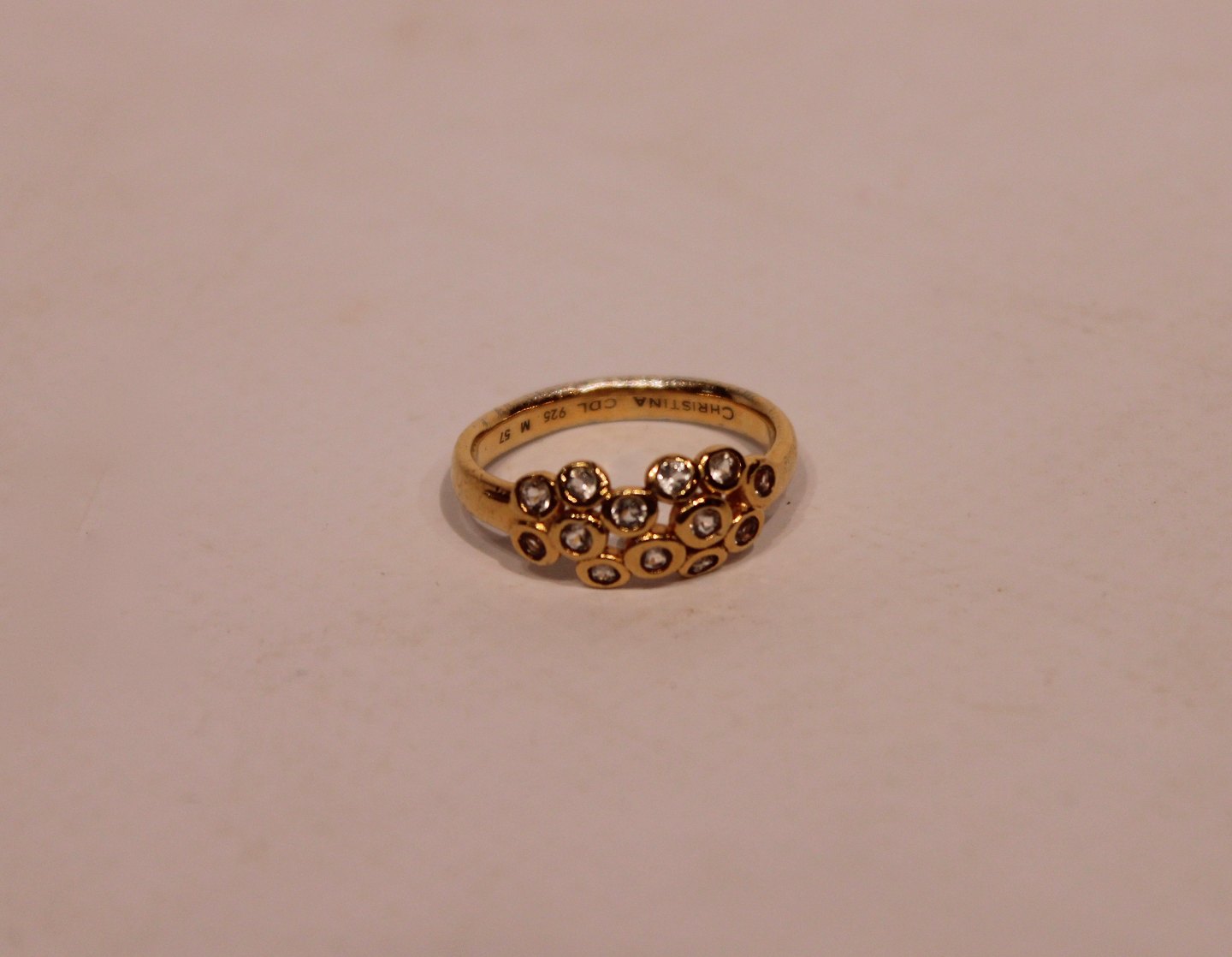 Forgyldt 925 sterling sølv ring med zirkoner af Christina Smykker.
