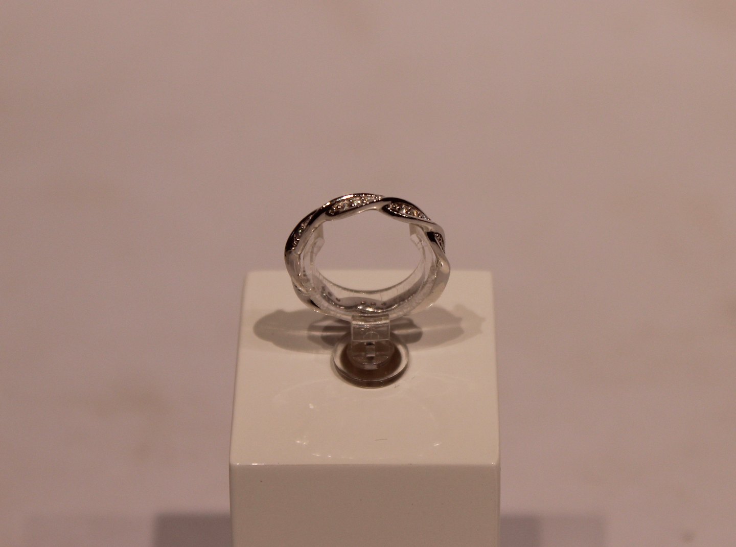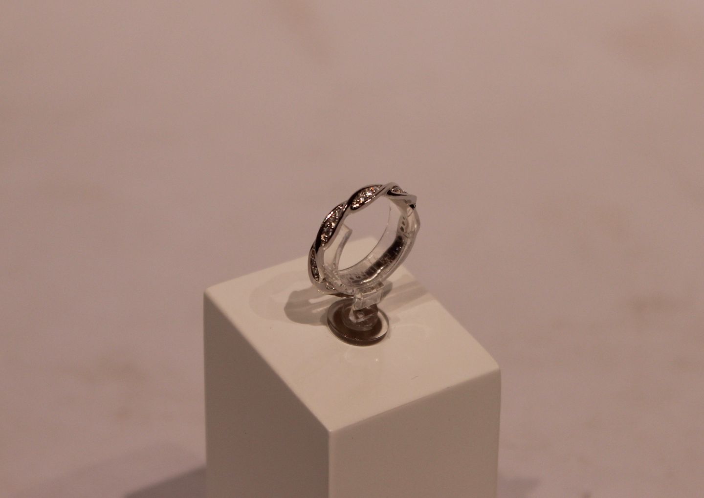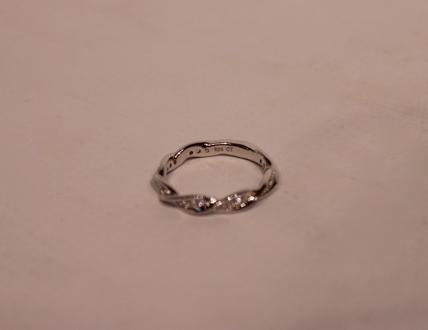 Snoet ring af 925 sterling sølv med små zirkoner, stemplet CT.