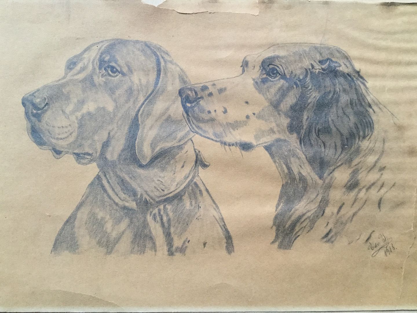 Blyantstegning af 2 hunde 1918.