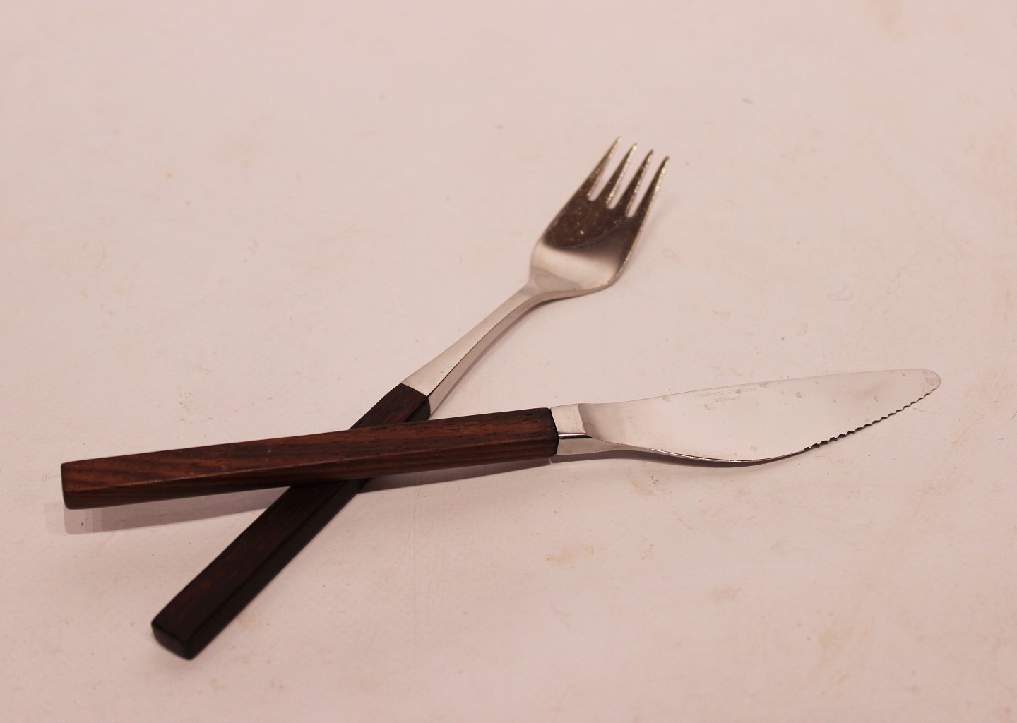 Middagskniv og middagsgaffel med skaft af palisander fra 1960erne.