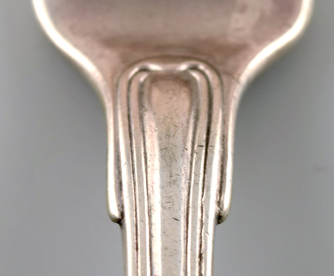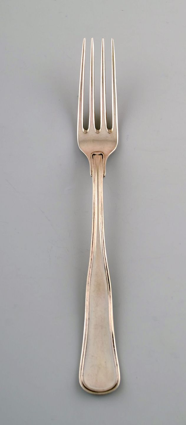 Dansk sølvsmed. Dobbeltriflet frokostgaffel i tretårnet sølv. Ca. 1900.