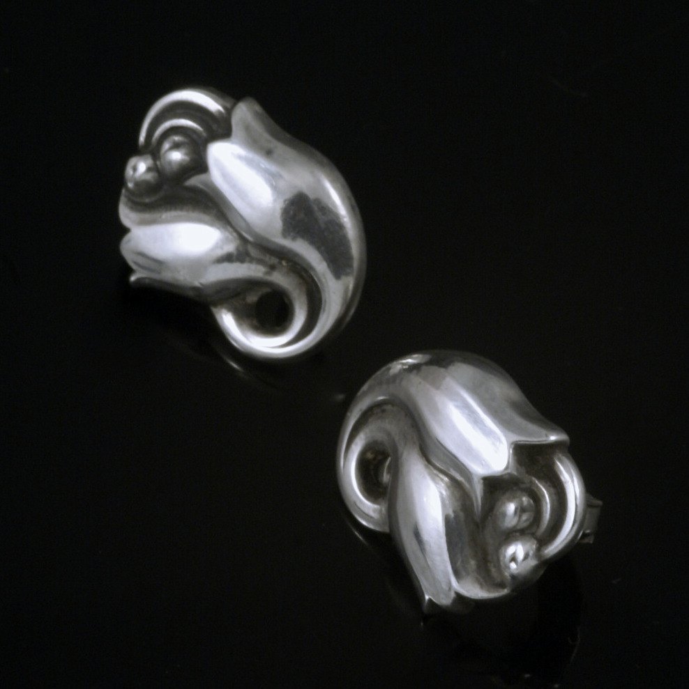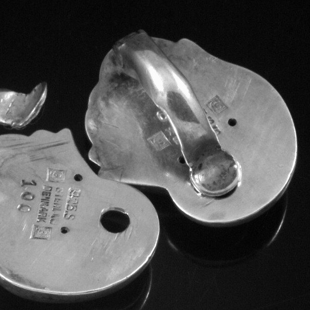 Text zugänglich auf Dänische: Georg Jensen. Øreklips i Sterling Sølv #100. 1933-44 stempler.