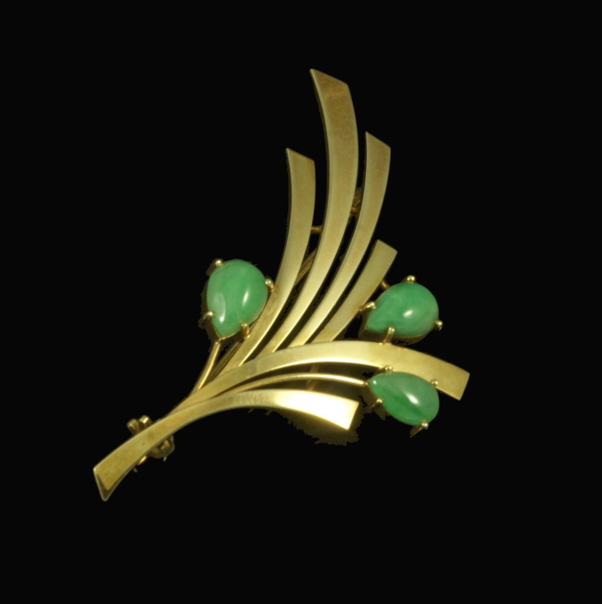 Bræmer-Jensen. Broche i 14k guld med jade. 1960erne