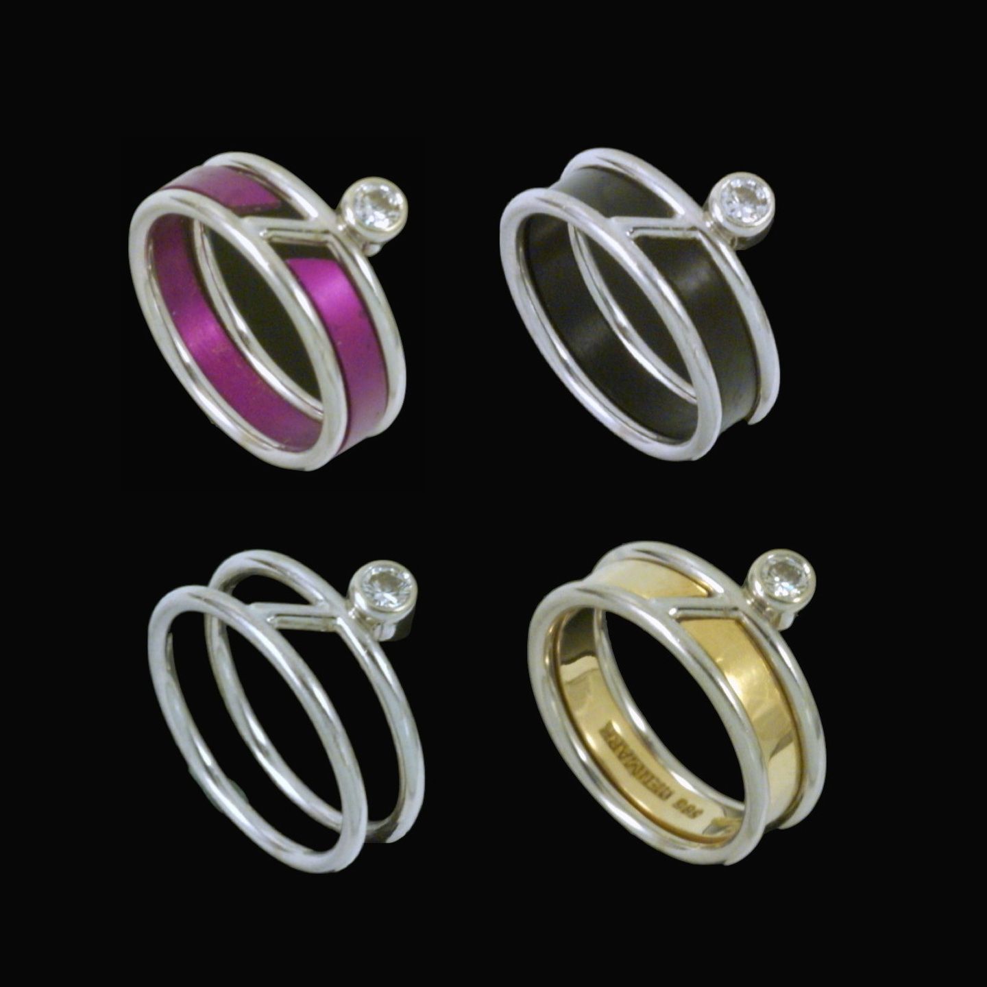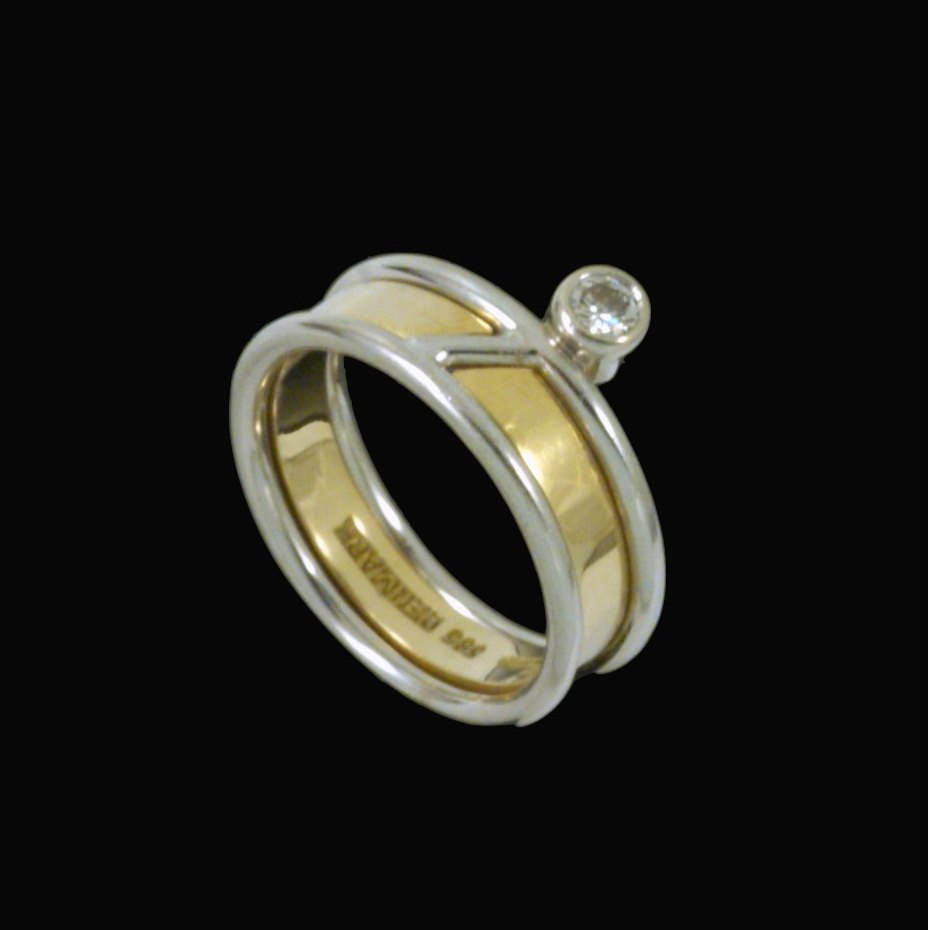 Hans Hansen. Ring 18k guld med 0.20ct brilliant og udskiftelige midterbånd.