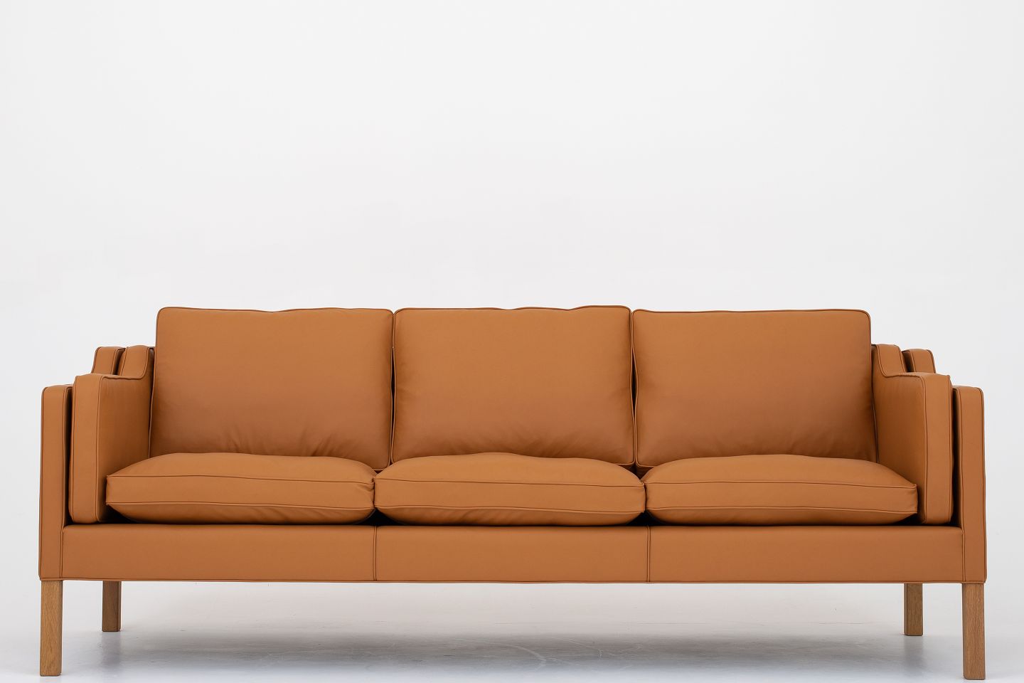 BM 2213 - Nybetrukket 3 pers. sofa i Savanne Beige-læder og ben i eg. KLASSIK tilbyder polstring af sofaen med stof eller læder efter eget ønske. Kontakt os venligst for mere information.