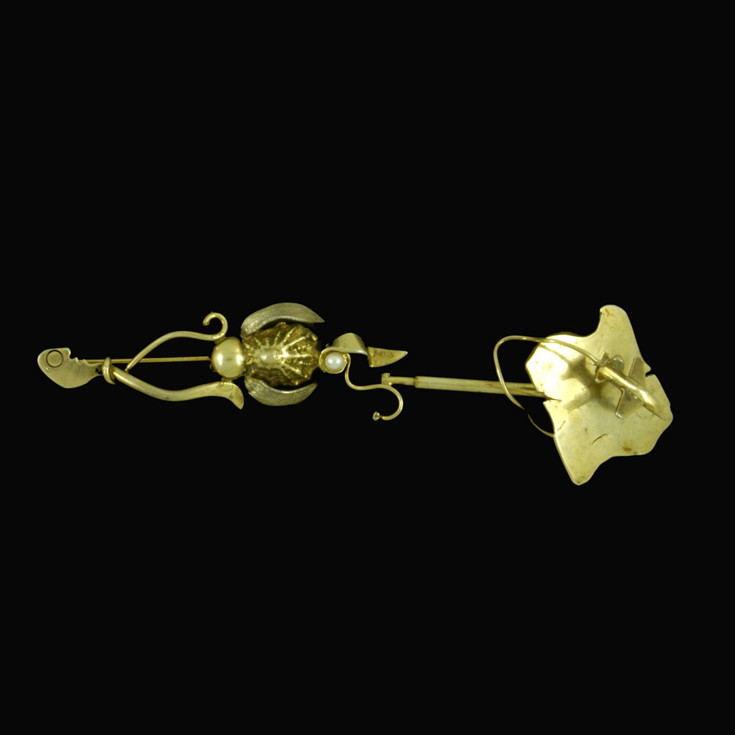 Text zugänglich auf Dänische: Blicher Fuglesang. Broche i forgyldt Sterling Sølv med Perle.