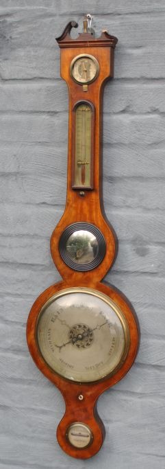 English wheel barometer, 19th century Mahogany box. Signed: J. Vassalli, Scarboro. With alcohol thermometer, hygrometer, etc. H .: 99 cm. With minor injuries.