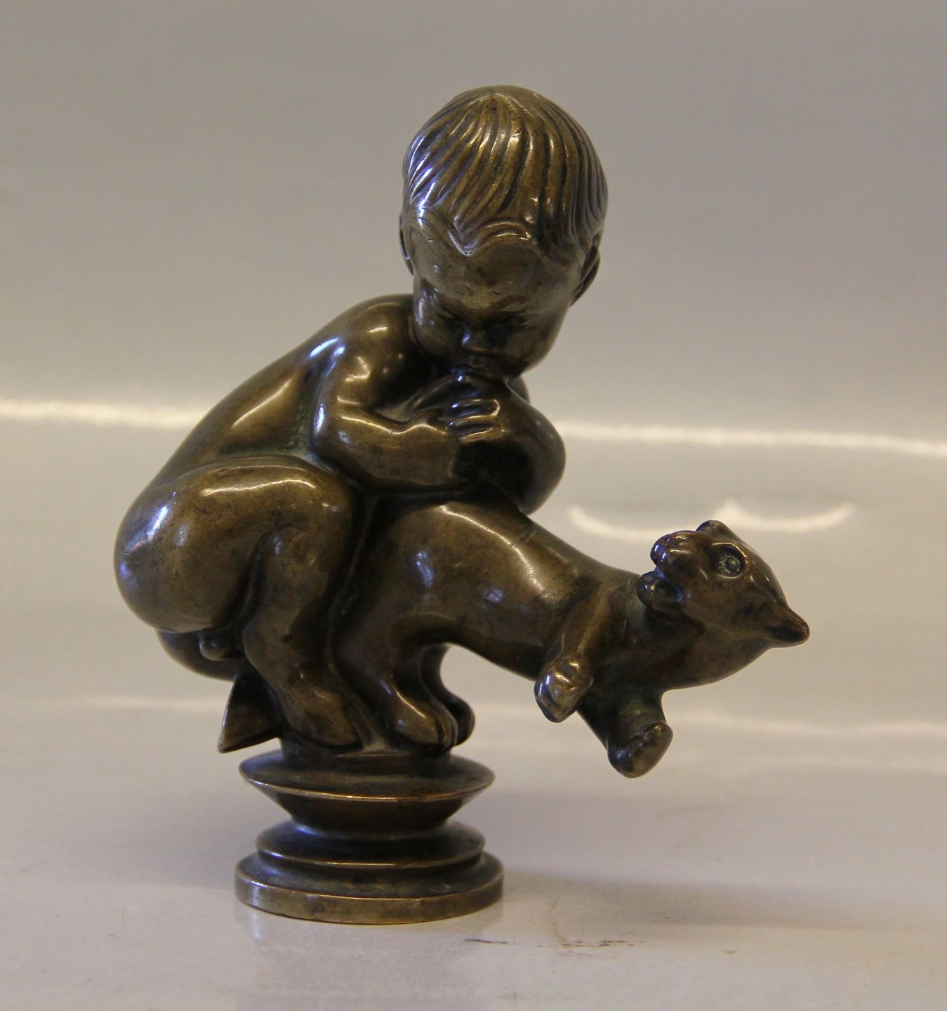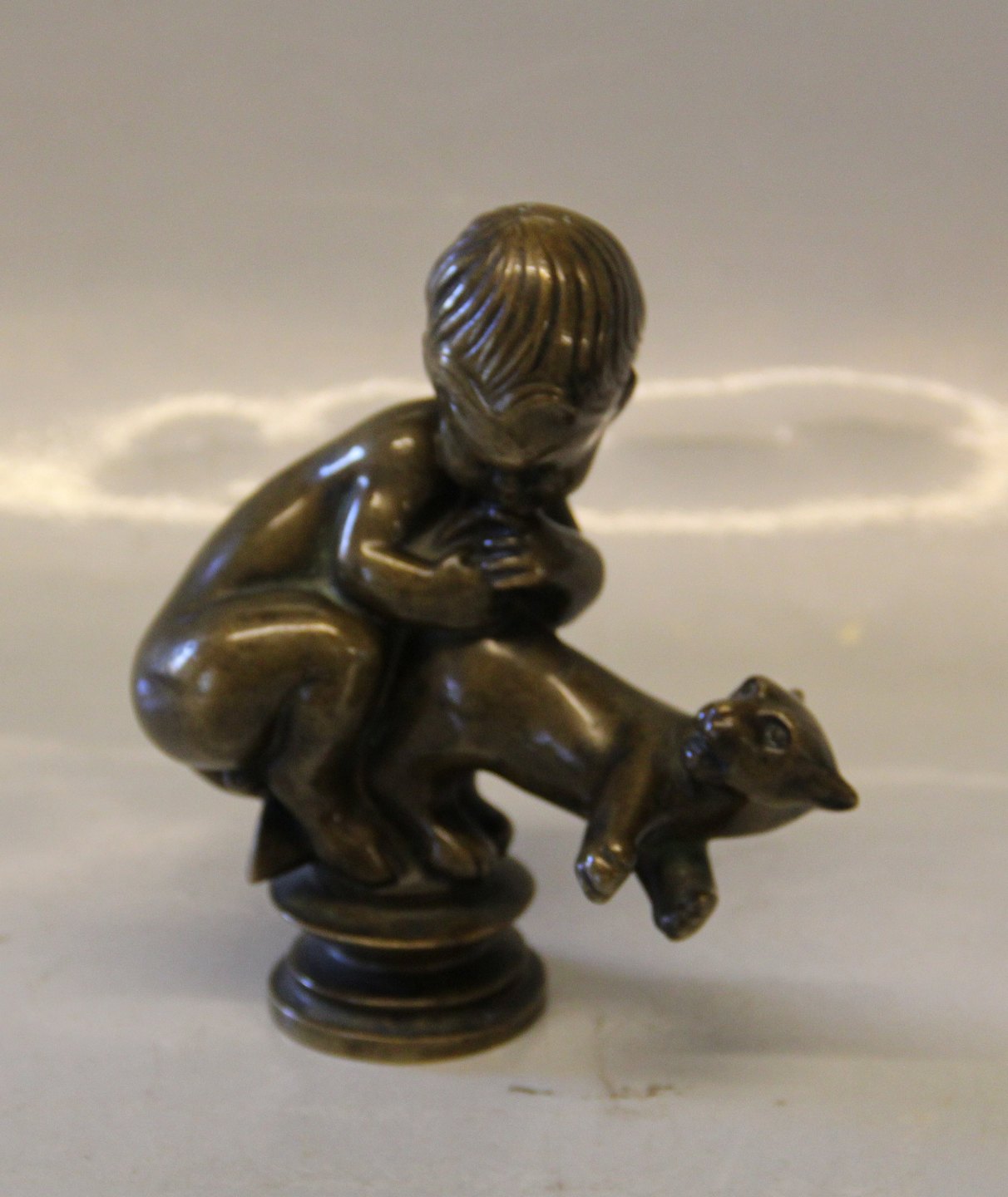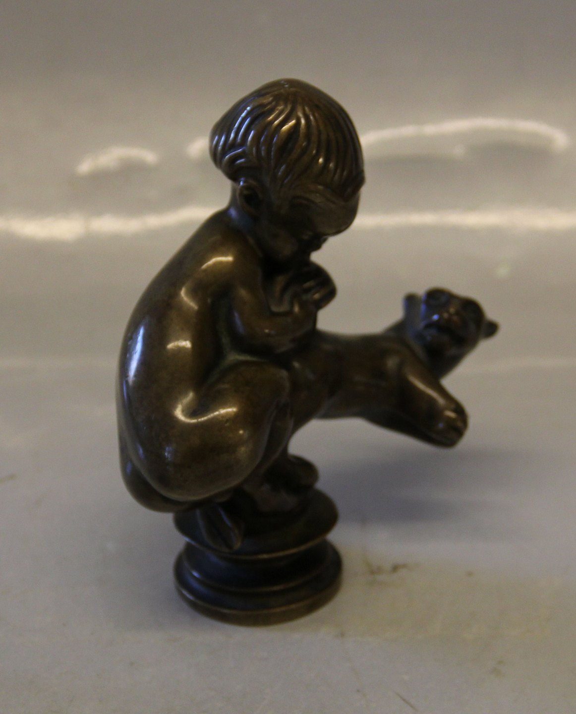 Kai Nielsen Bronze dreng med kat No. VI Signeret Kai N 13.3 x ca 12 cm
