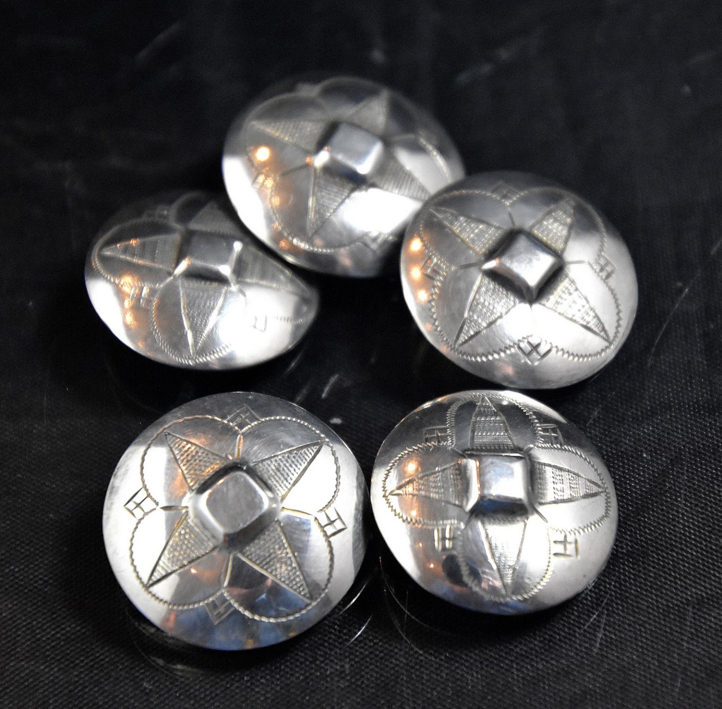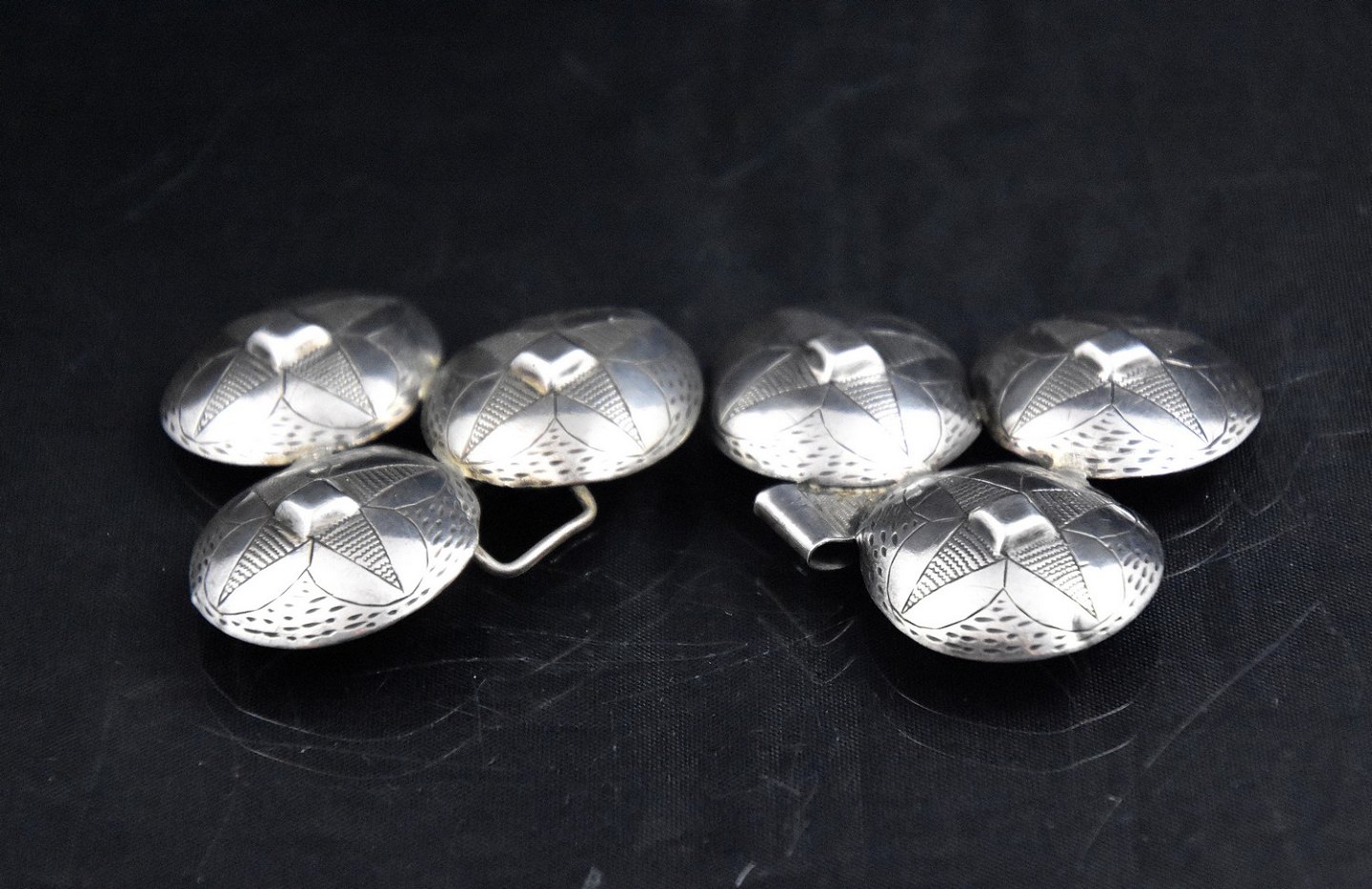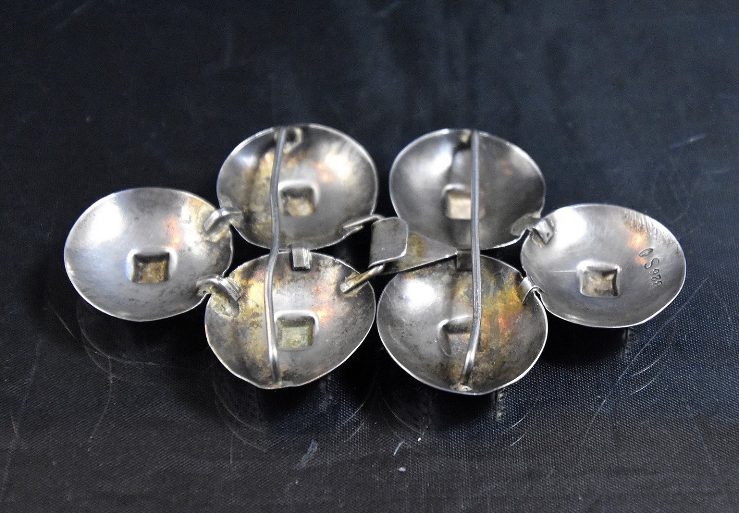 Bælte spænde i sølv med 5 knapper lignende skjold