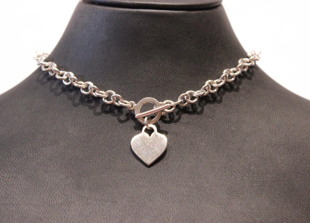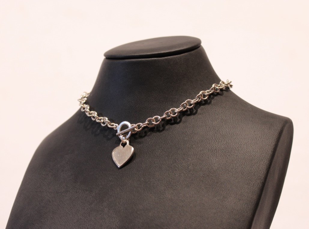 Kort halskæde med hjerteformet vedhæng af sterling sølv.