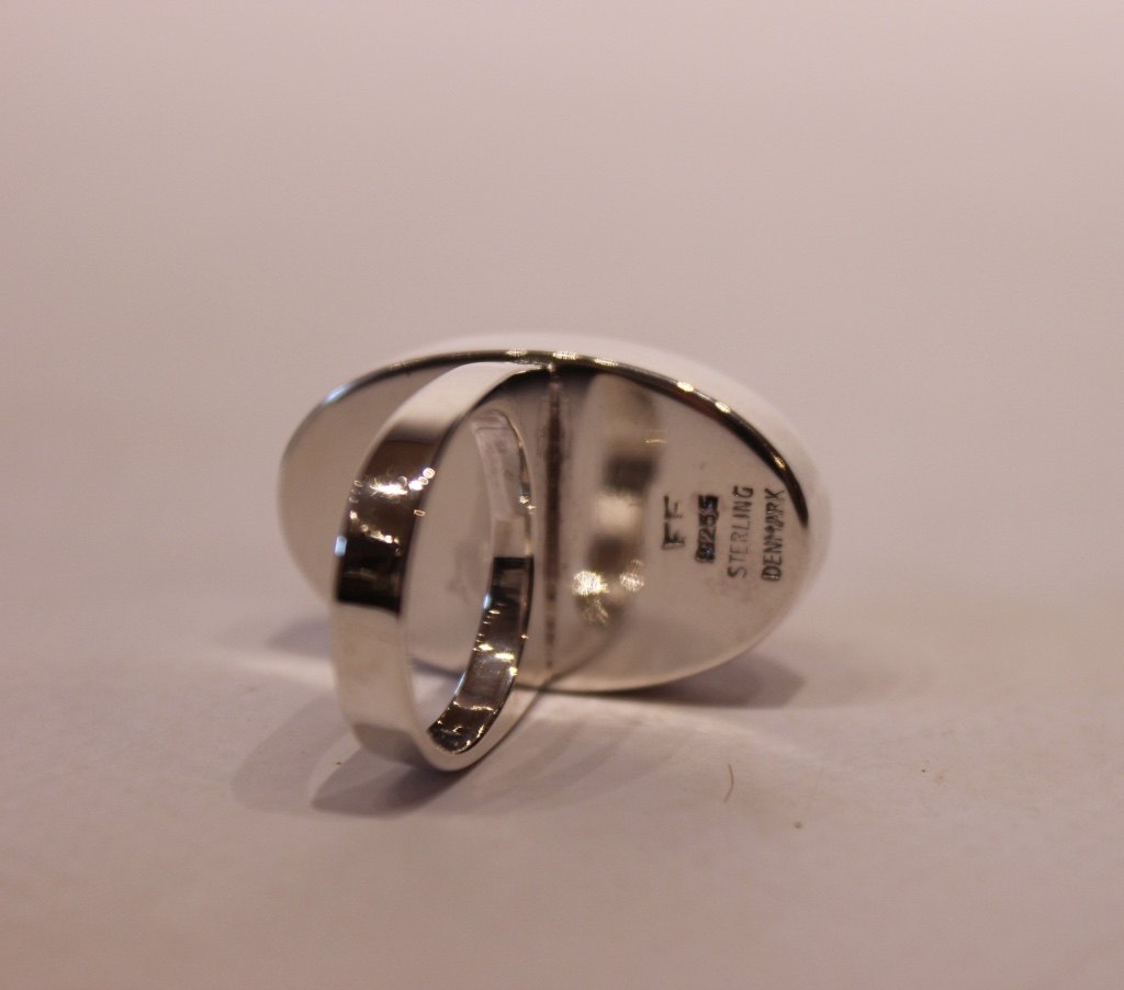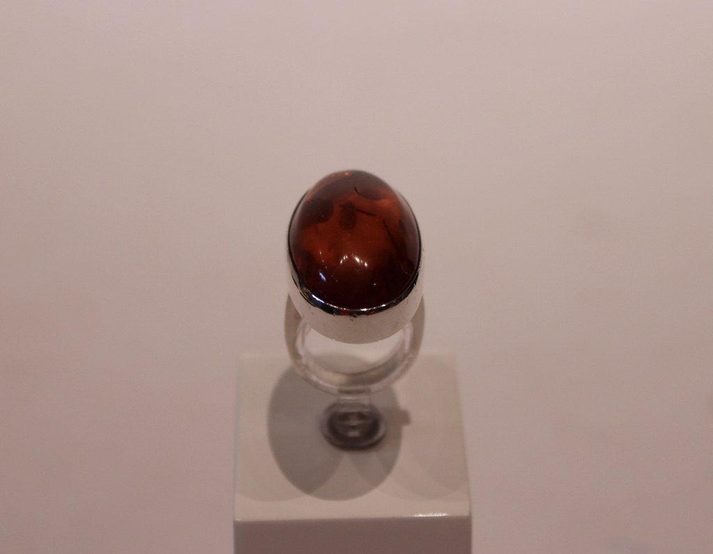 Ring med rav og af sterling sølv, stemplet F.F.