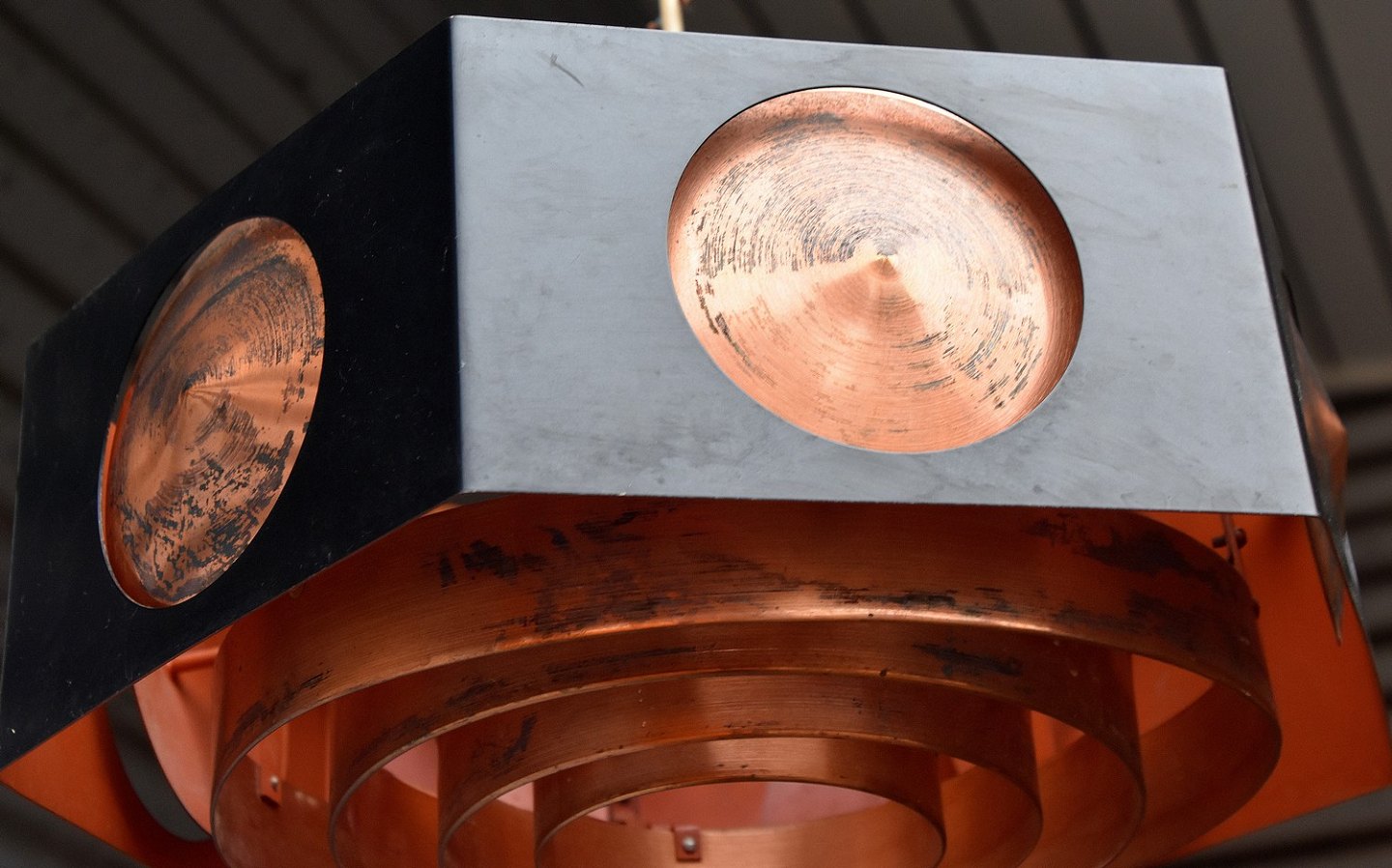 6-kantet retro loftslampe, af kobber og mat lakkeret sort