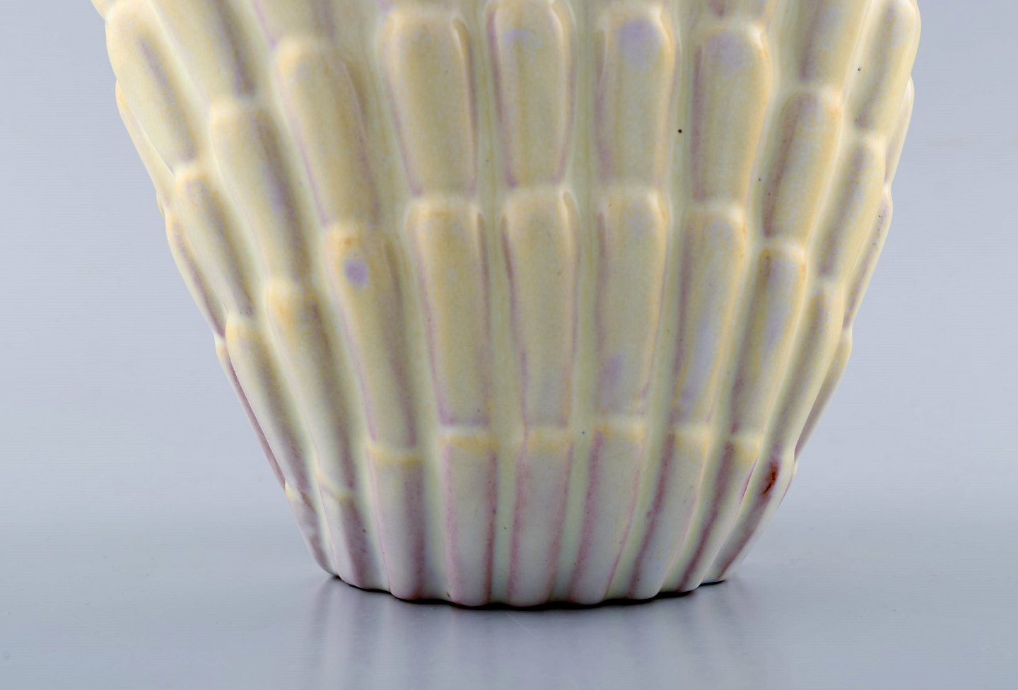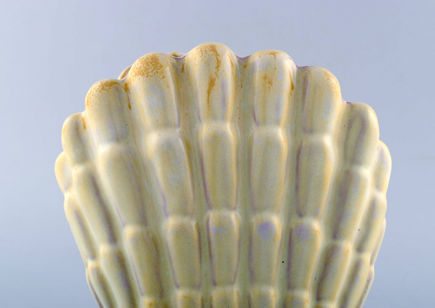 Vicke lindstrand for Upsala-Ekeby. Art deco muslingeformet vase i glaseret keramik.