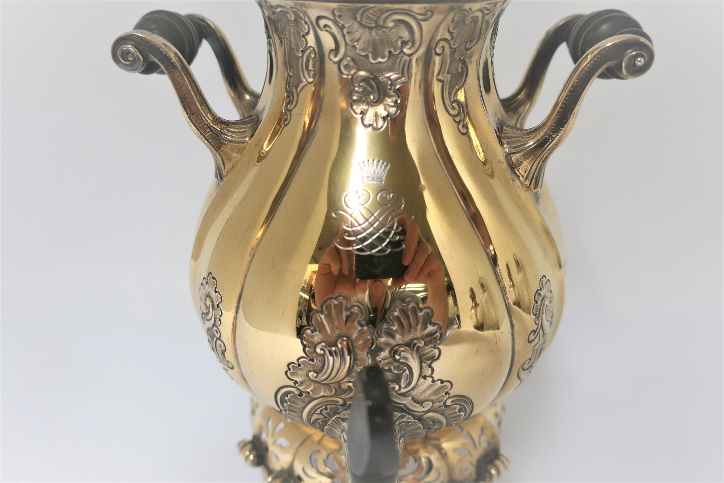 Michelsen. Samovar forgyldt. Sterling (925). Højde 24 cm. Greve krone indgraveret. Produceret 1940.